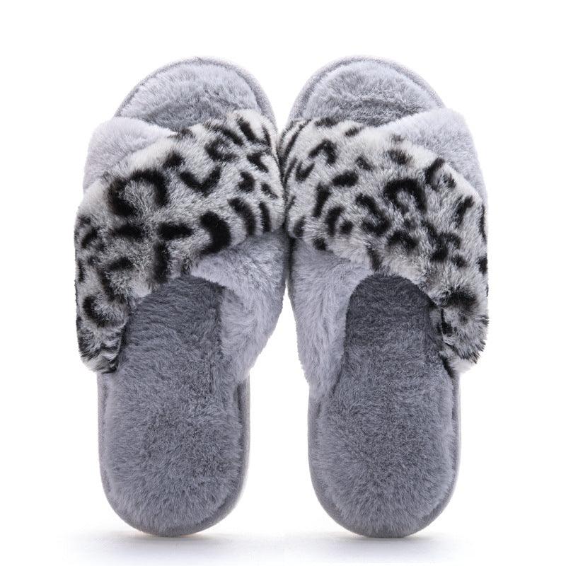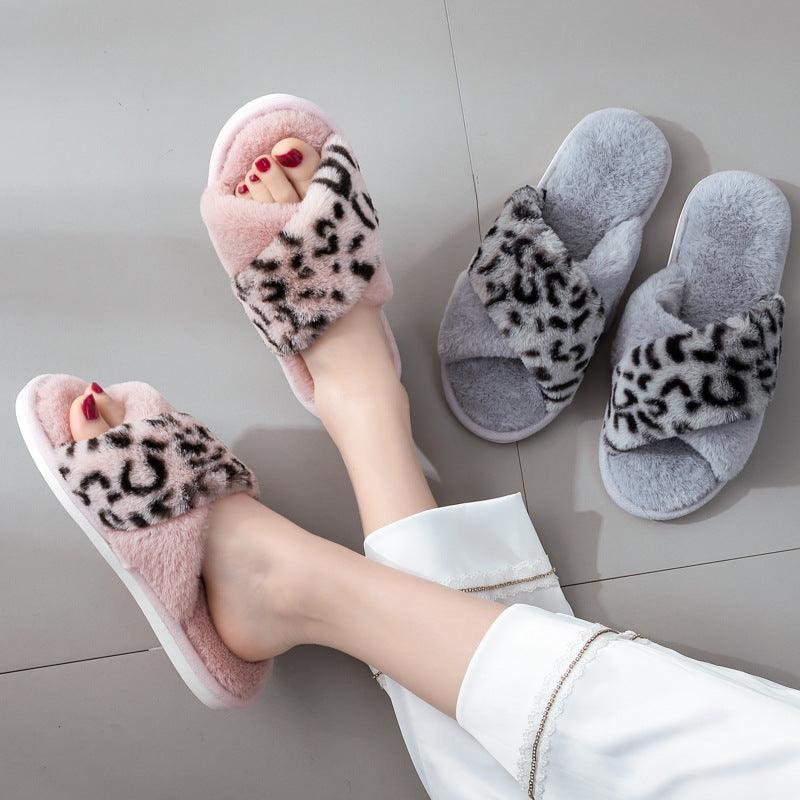 New cross-border home leopard cross gross slippers female European and American INS wind profile plush floor cotton slippers female