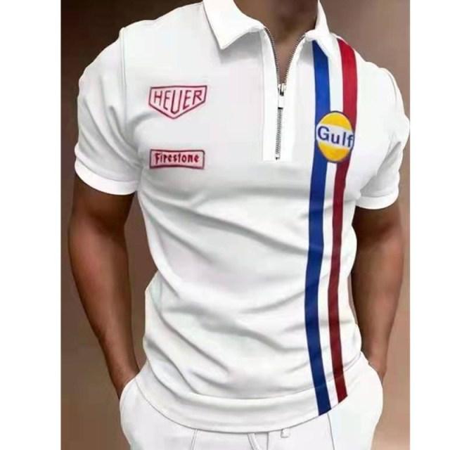 New Summer High Quality Men Polo Shirts High Street Print Casual Short Sleeve Mens Shirts Turn-Down Collar Zipper Polo Shirt Men