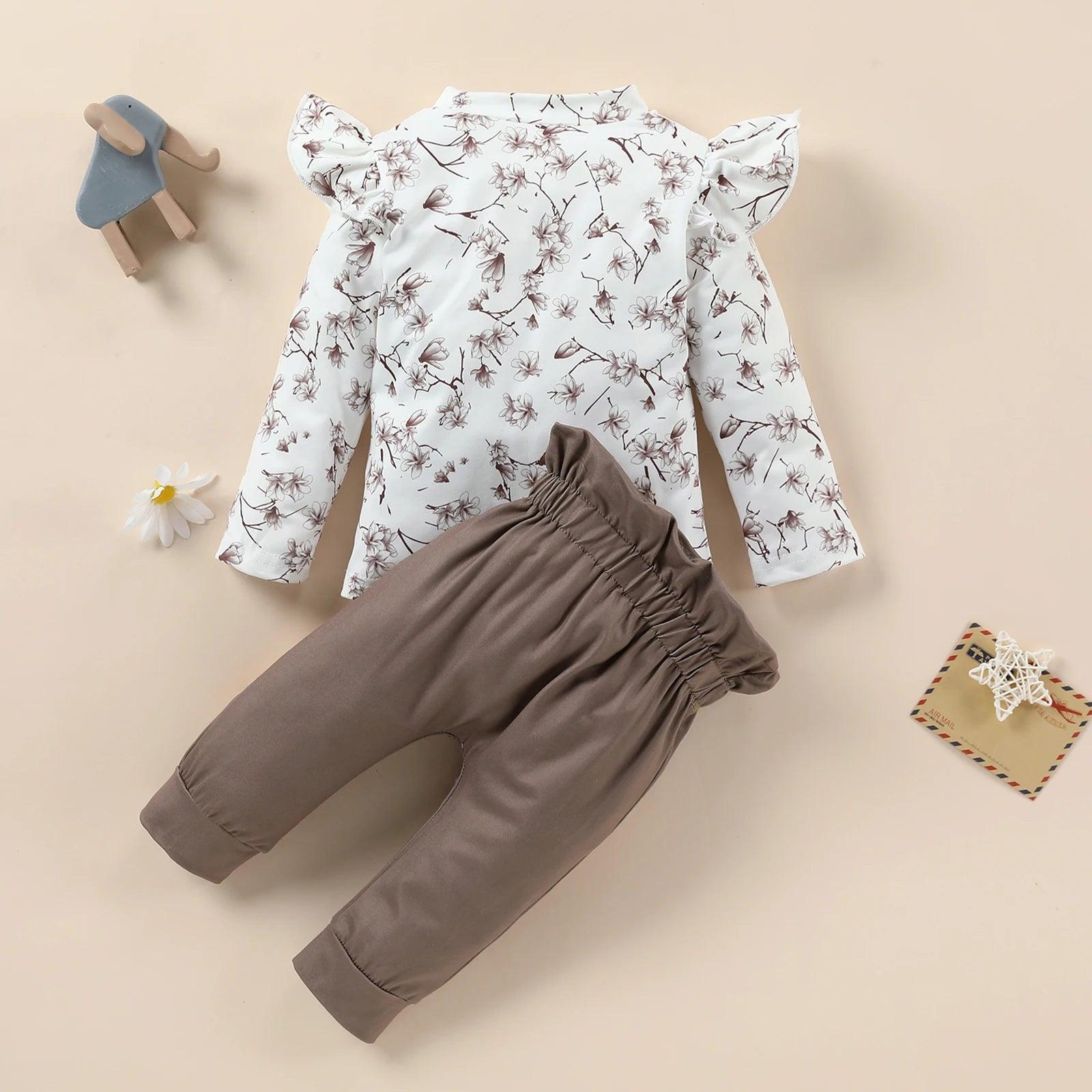 Newborn Baby Girl Clothes Set Fashion Floral Long Sleeve Pullover Top Solid Bow Long Pants Toddler Infant Autumn Outfit