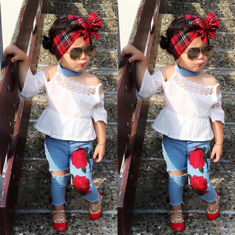 Newest Toddler Kids Girls Lace Tops Shirt Flower Jeans Denim Pants Outfits Set Read more