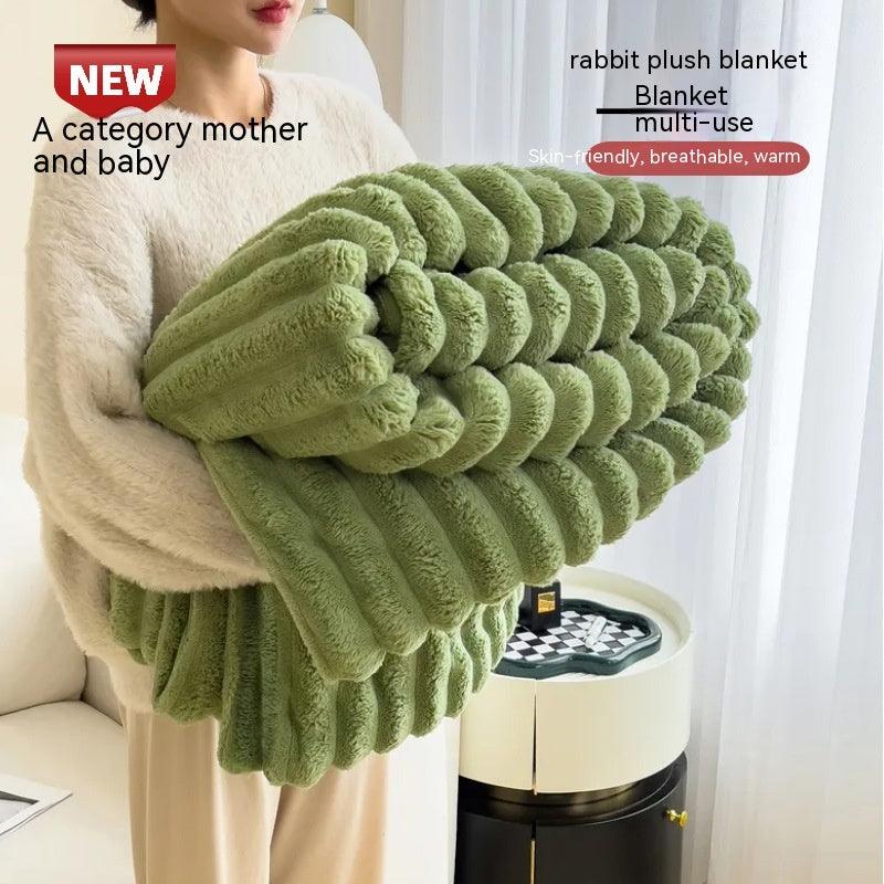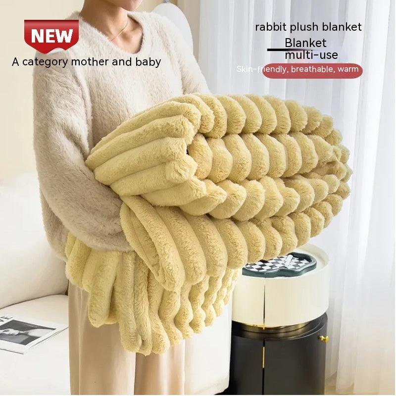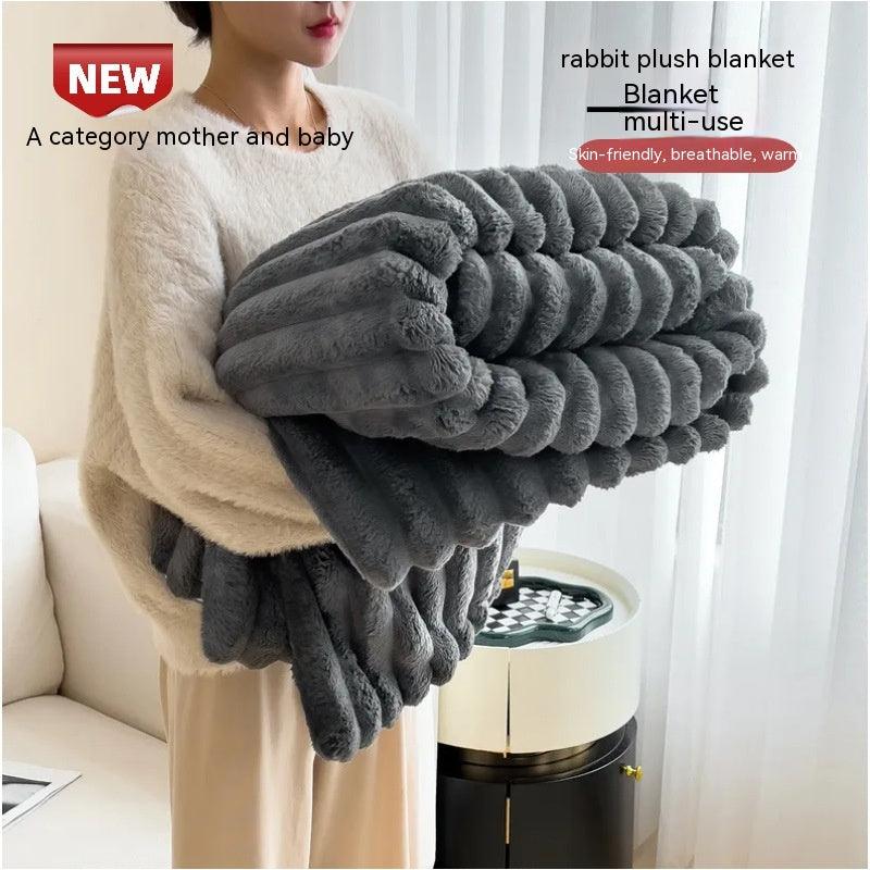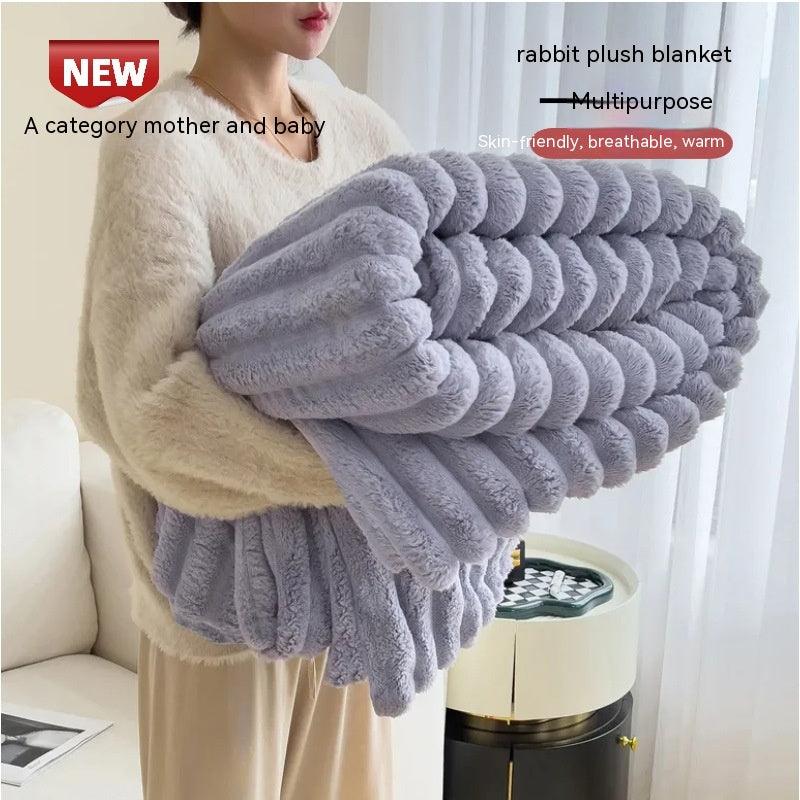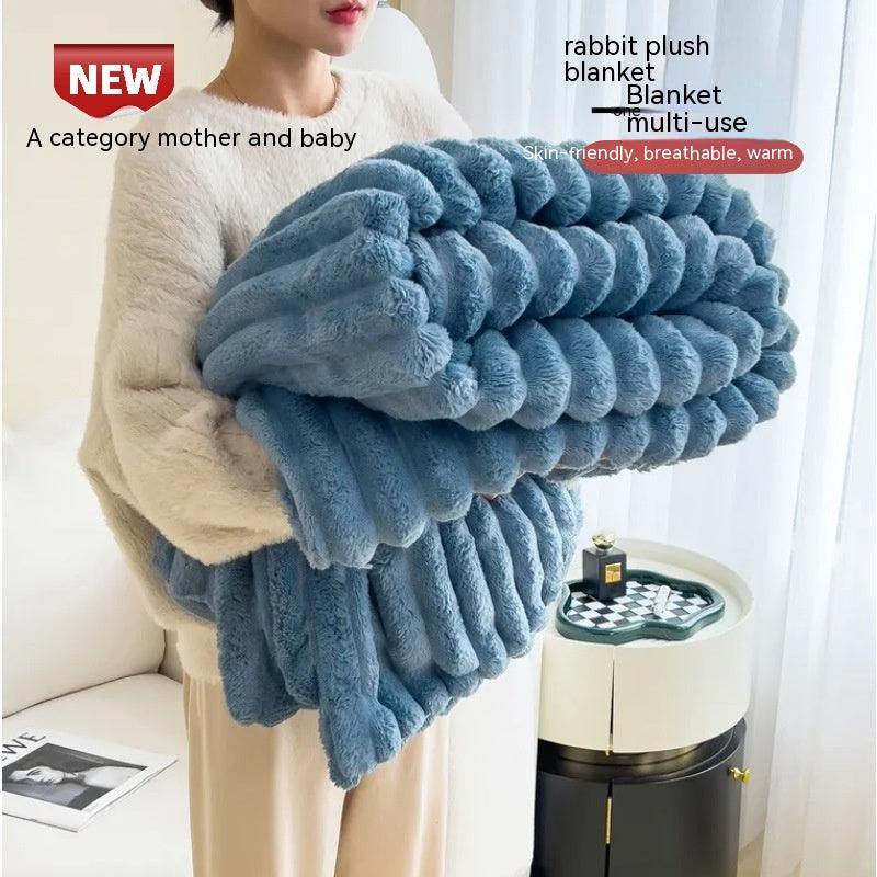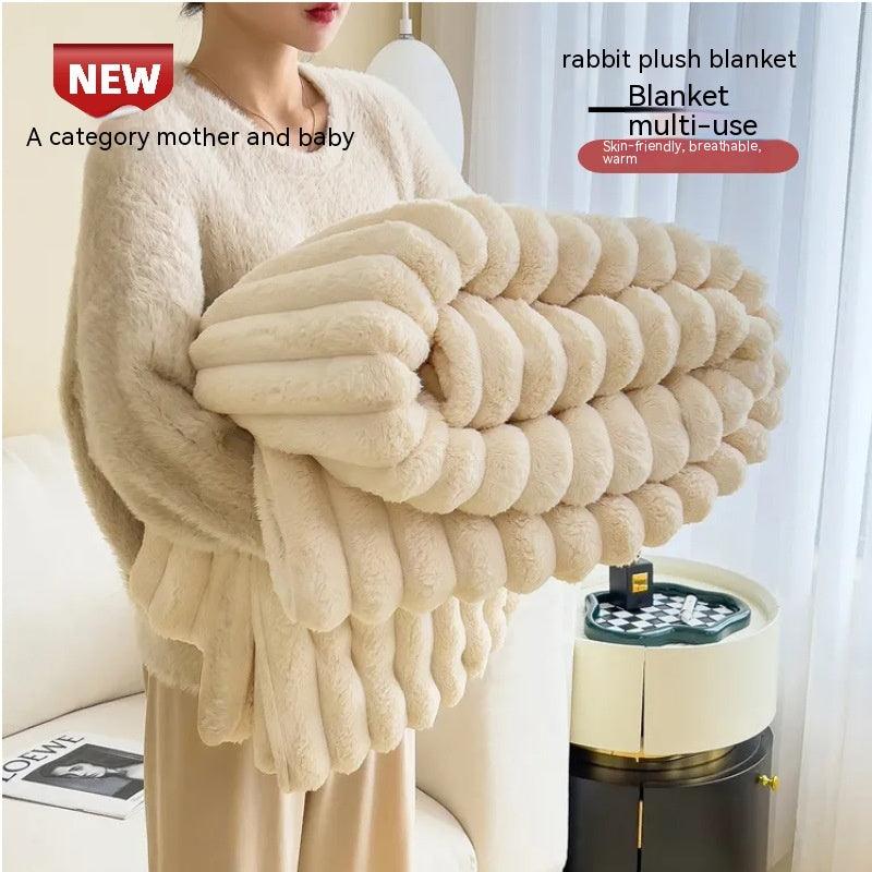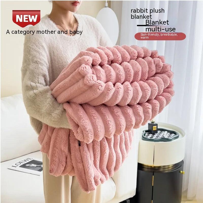 Rabbit Plush Multifunctional Blanket Flannel Milk Fiber