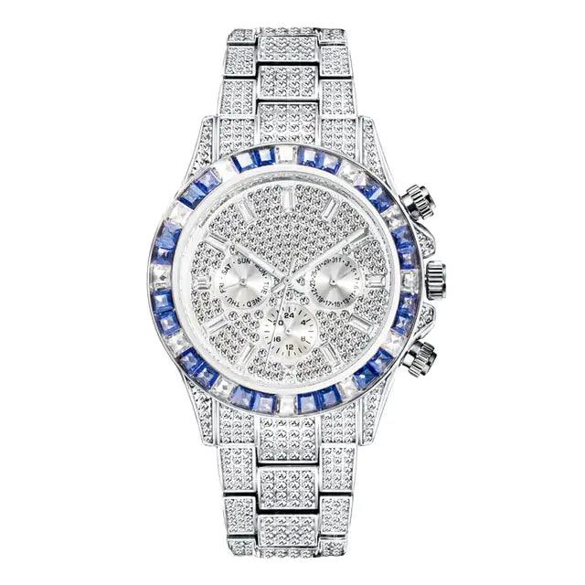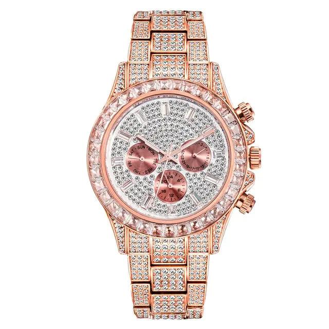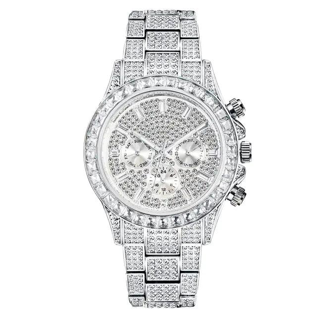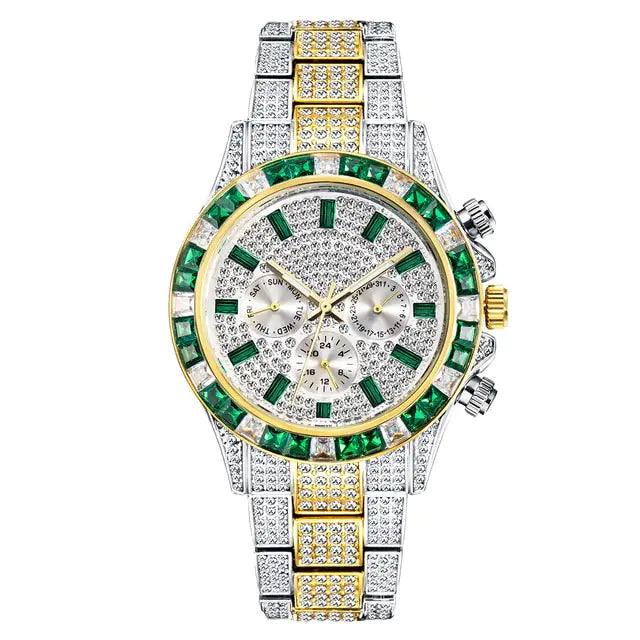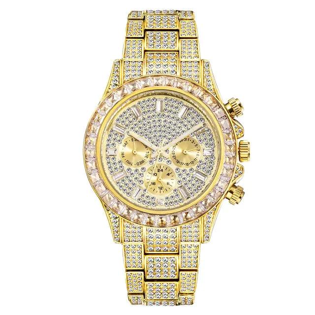 This exquisite Rainbow Diamond Quartz Watch is the perfect accessory for the modern gentleman. Featuring a solid stainless steel construction and Swiss Geneva mechanics, this watch is built to last. The stunning 18K gold nano vacuum plating ensures that the beautiful gold color will never fade, while the luminous quartz movement ensures accurate timekeeping. The tough 30M daily waterproofing means you can wear this watch anywhere, whether it's a formal event or a casual night out. This makes an excellent gift for any special occasion. Order yours today!