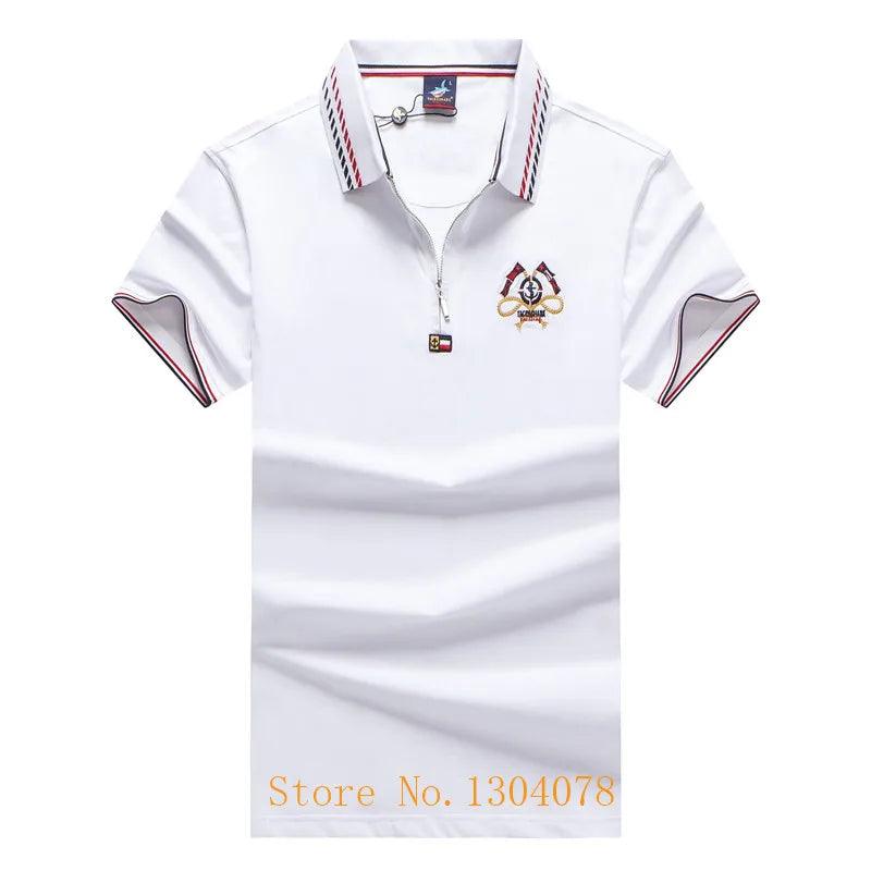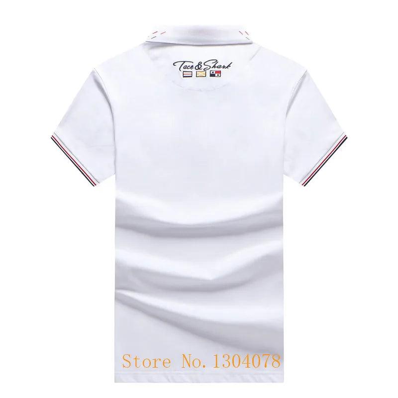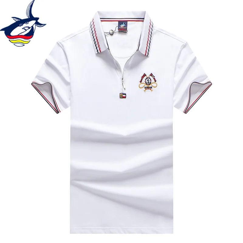 Red Blue White 95% Cotton Polo Shirt Men with Short Sleeve Zipper Design Flag Embroidery Fashion Casual Brand Tace & Shark Polo