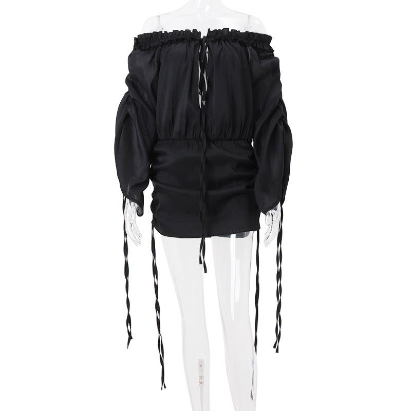 Sexy Pleated Tube Top Lantern Long Sleeve Sheath Dress