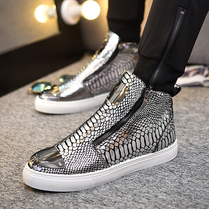 Product information: Pattern: snake patternColor: black, gold, silverOpening depth: shallow mouth (below 7cm)Upper height: highHeel shape: flat heelSole craft: viscose shoesWearing style:...