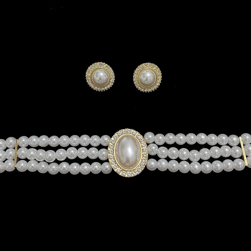 Simple Retro Oval Pearl Wedding Dress Performance Chain Earrings