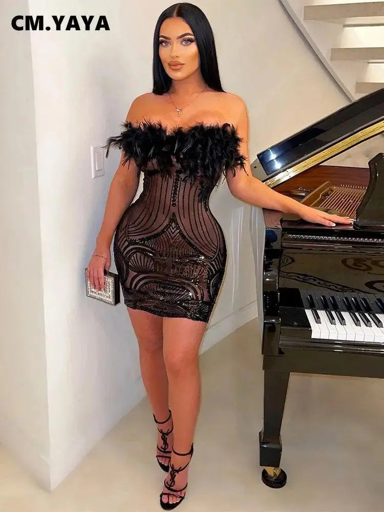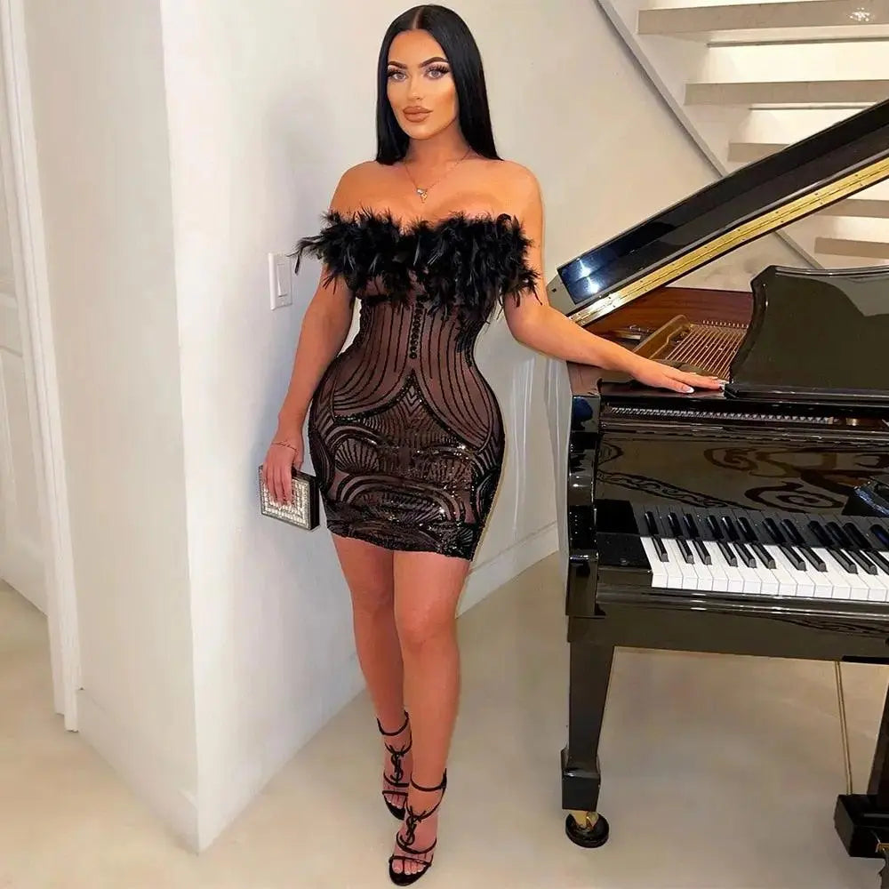 Elasticity: High StrecthSleeve Style: StraplessFabric Type: PolyesterPattern Type: PaisleyFit Type: Slim FitSilhouette: PencilNeckline: StraplessDecoration: SequinedStyle: Sexy & ClubDresses Length: Above... Read more