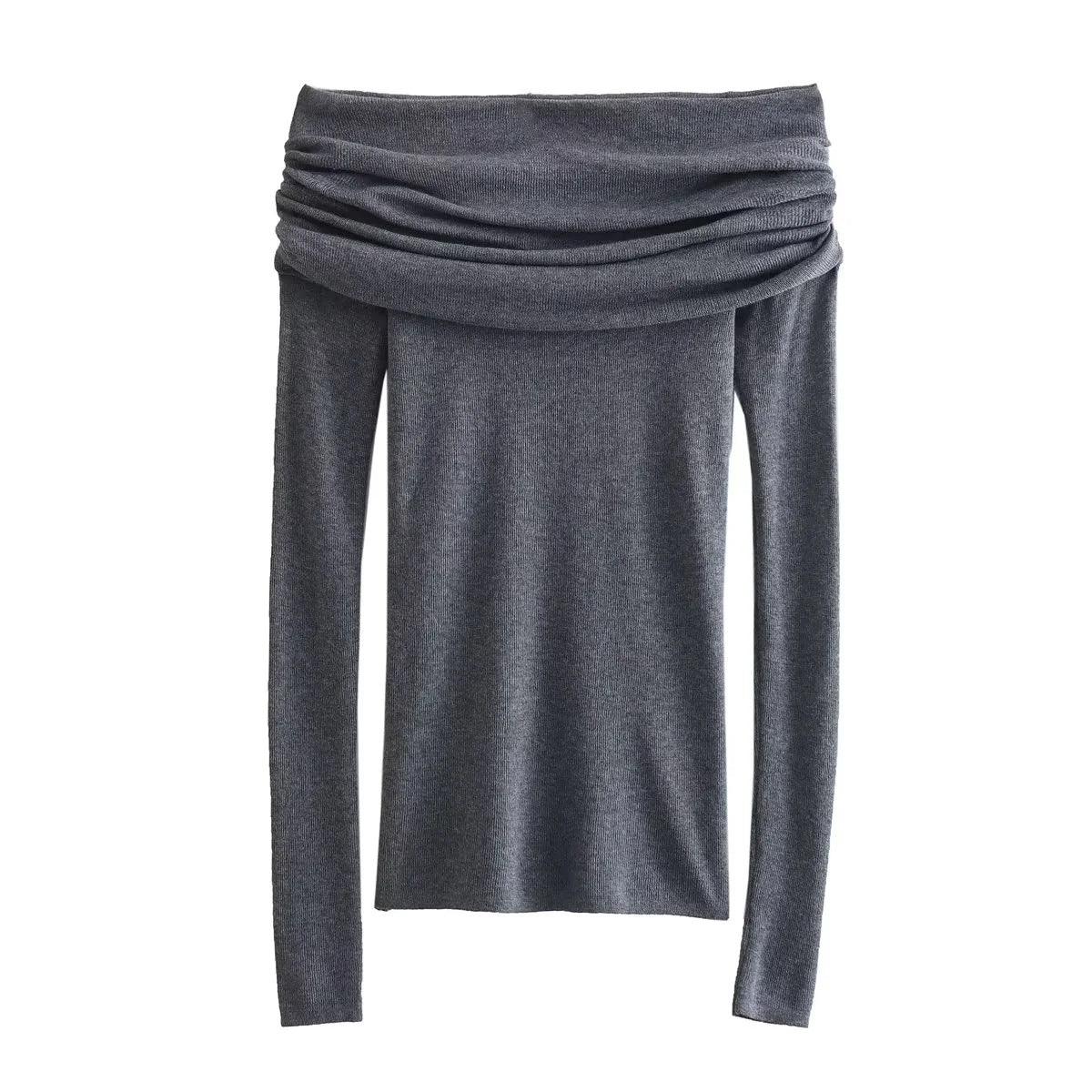 Slim-fit Cuffed Off-shoulder Long Sleeve Sweater