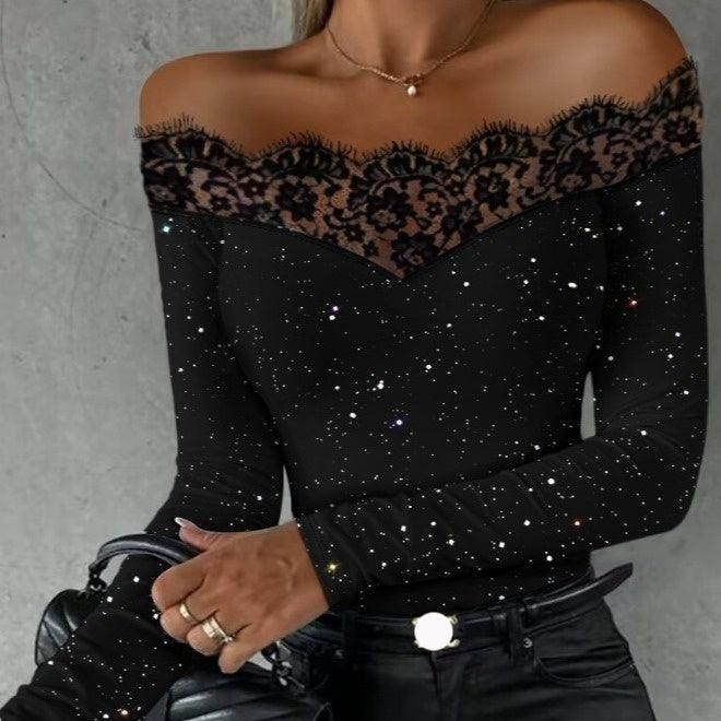 Slim-Fit Mesh Off-shoulder Bronzing Top