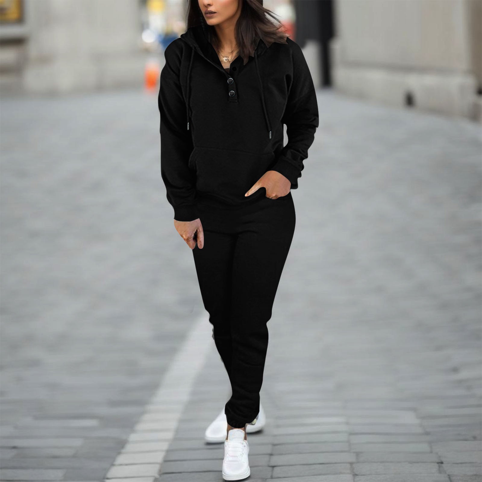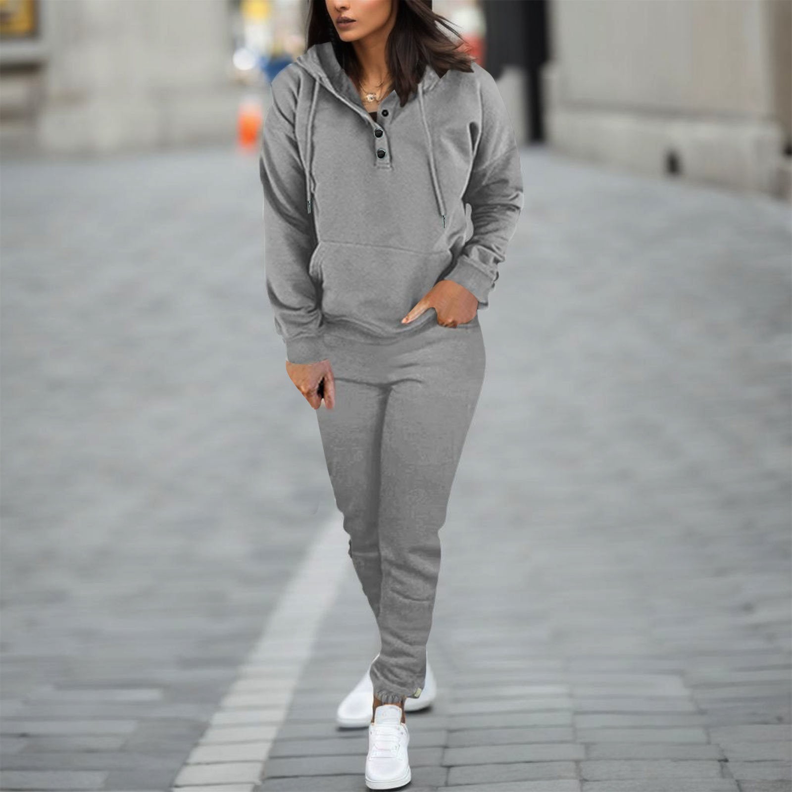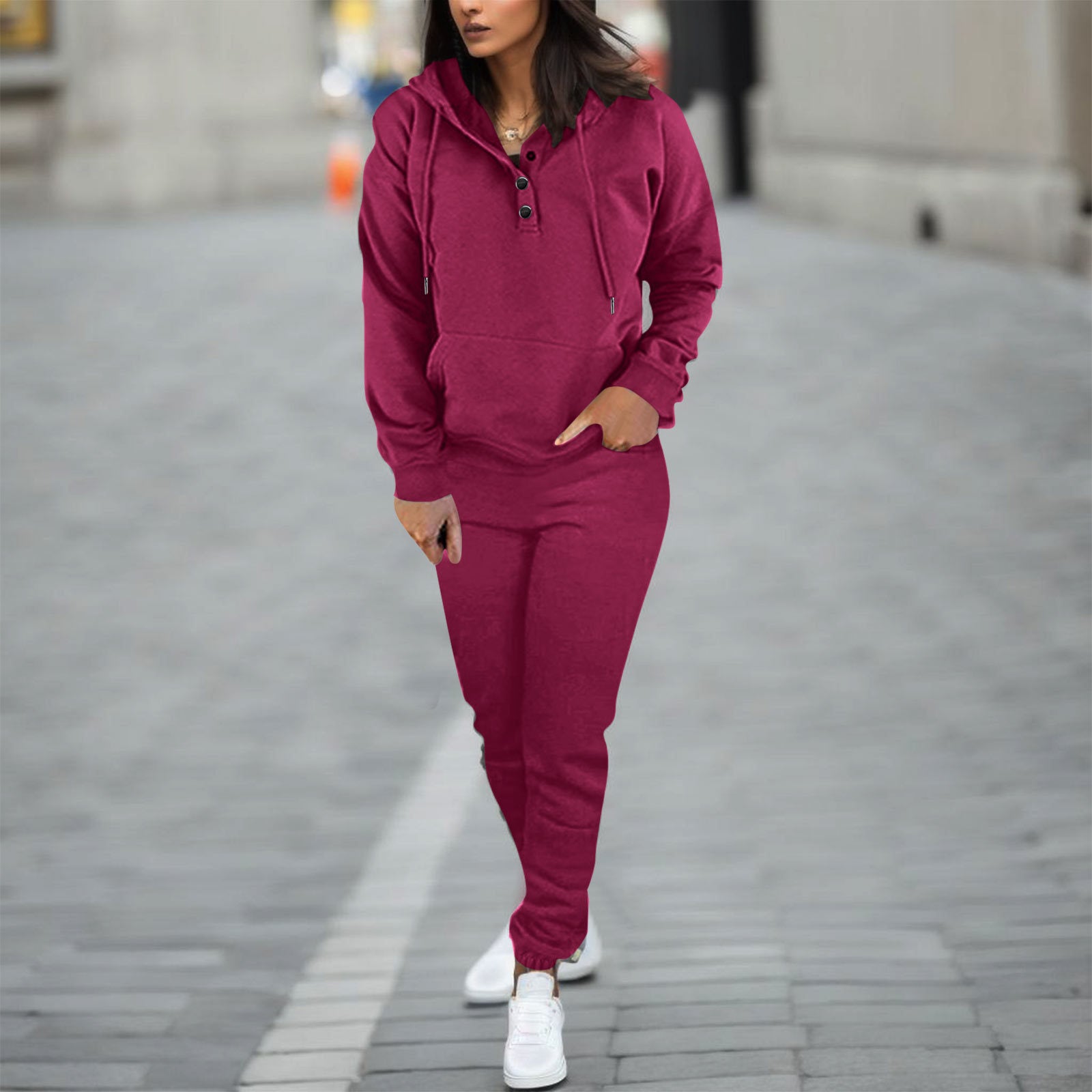 Solid Color Hooded Long Sleeve Sweater Two-piece Suit