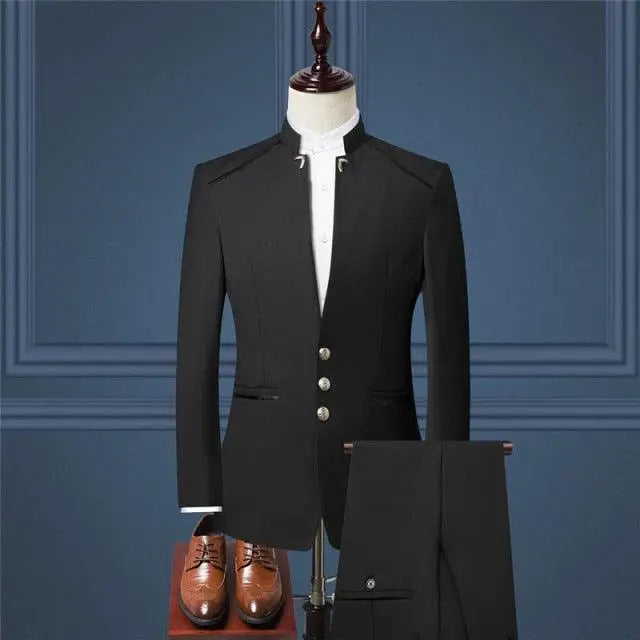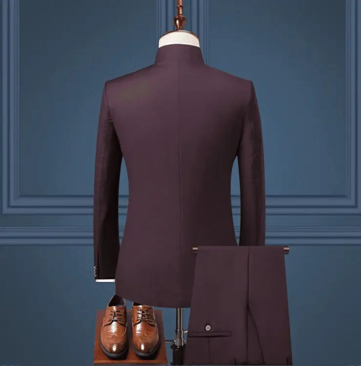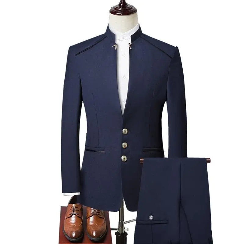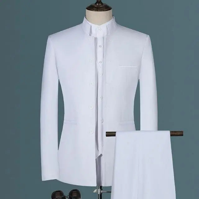Stand Collar Men Blazer Pants Vest Business Men's Wedding Suit Jacket Coat Trousers Waistcoat High Quality Slim Vest Dress Set