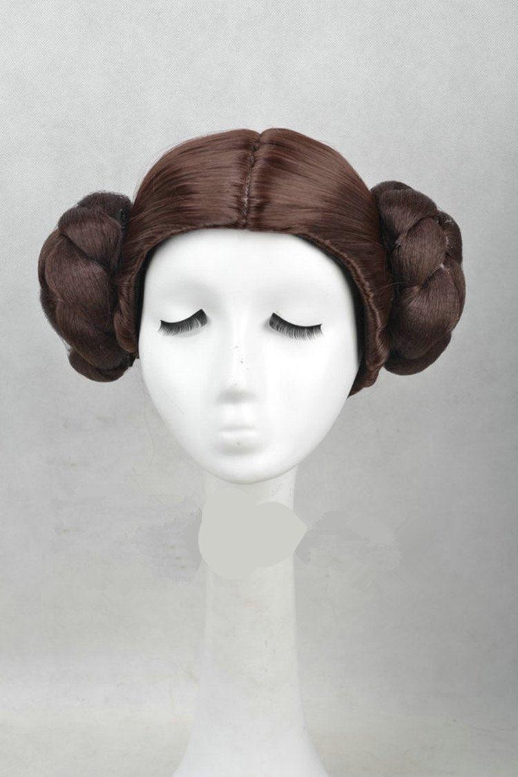 Star Wars Princess Leia Organa Solo Wig Short Brown Costume Hair With Two Buns Cosplay