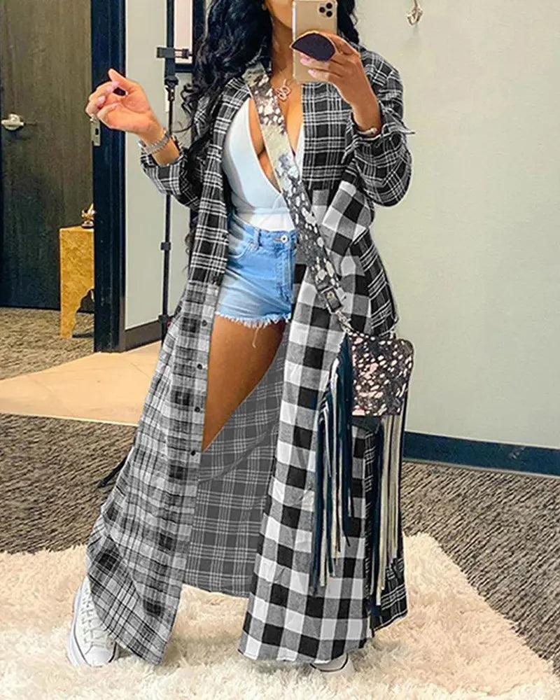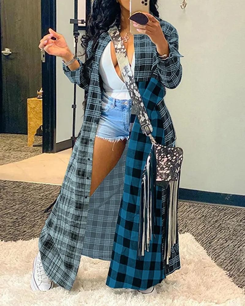 Stylish Casual Long Plaid Coat Shirt - Perfect for Fashion Enthusiasts