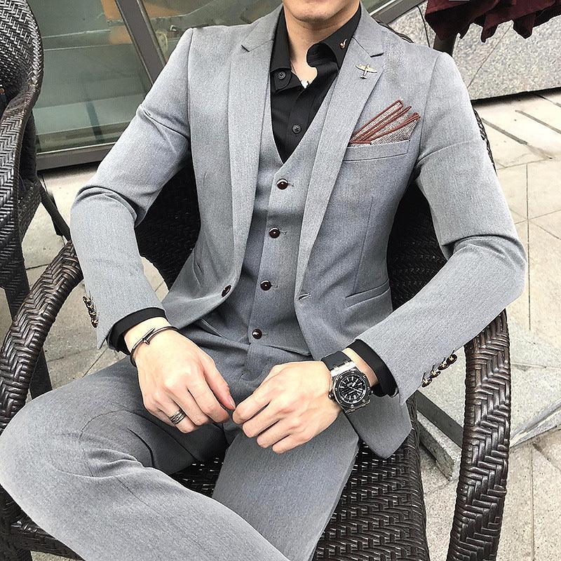 Suit male three-piece suit dress business casual single western Korean version of the slim suit suit male professional clothing