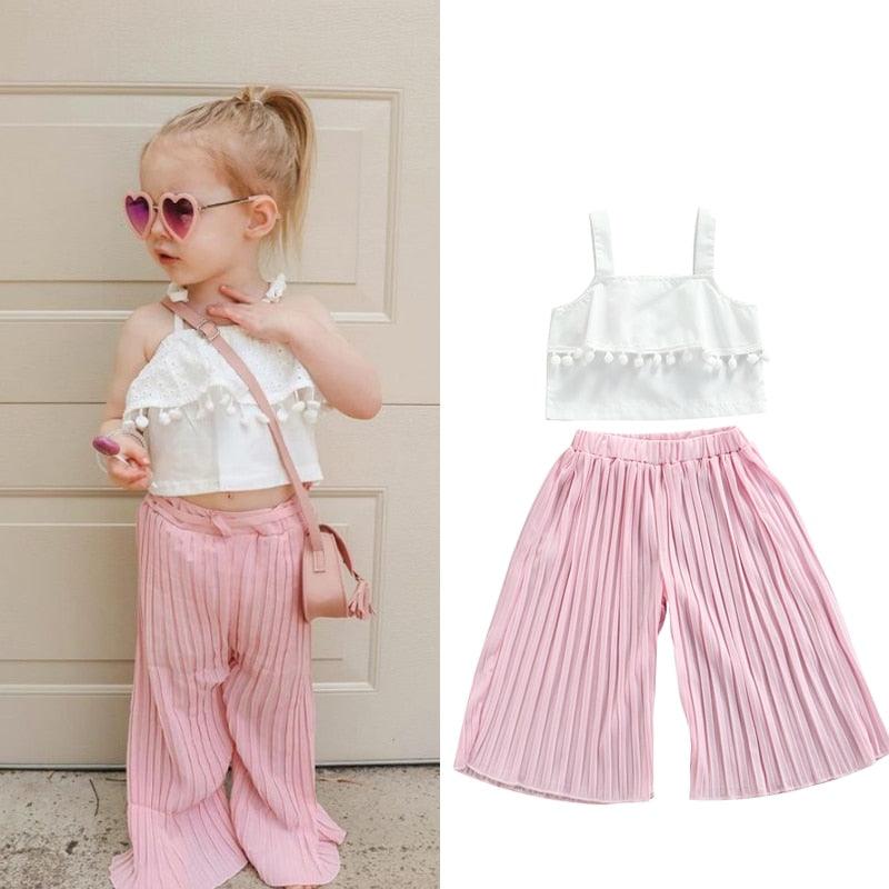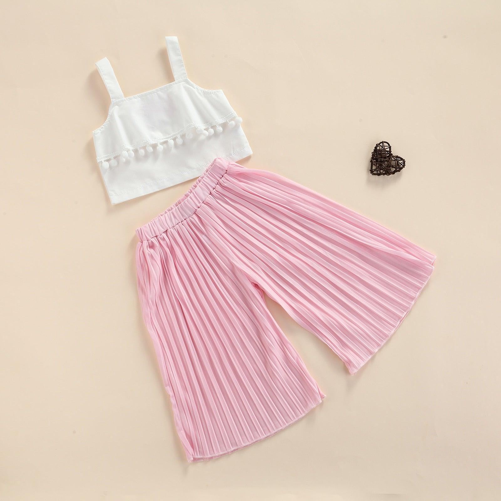 Summer girls children's summer suits wide-leg pants mesh two-piece fashion pure cotton middle-aged children's casual fashion