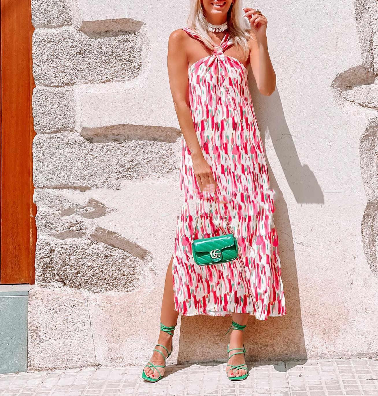 Summer Women's Strawberry Fresh Halter Side Split Dress
