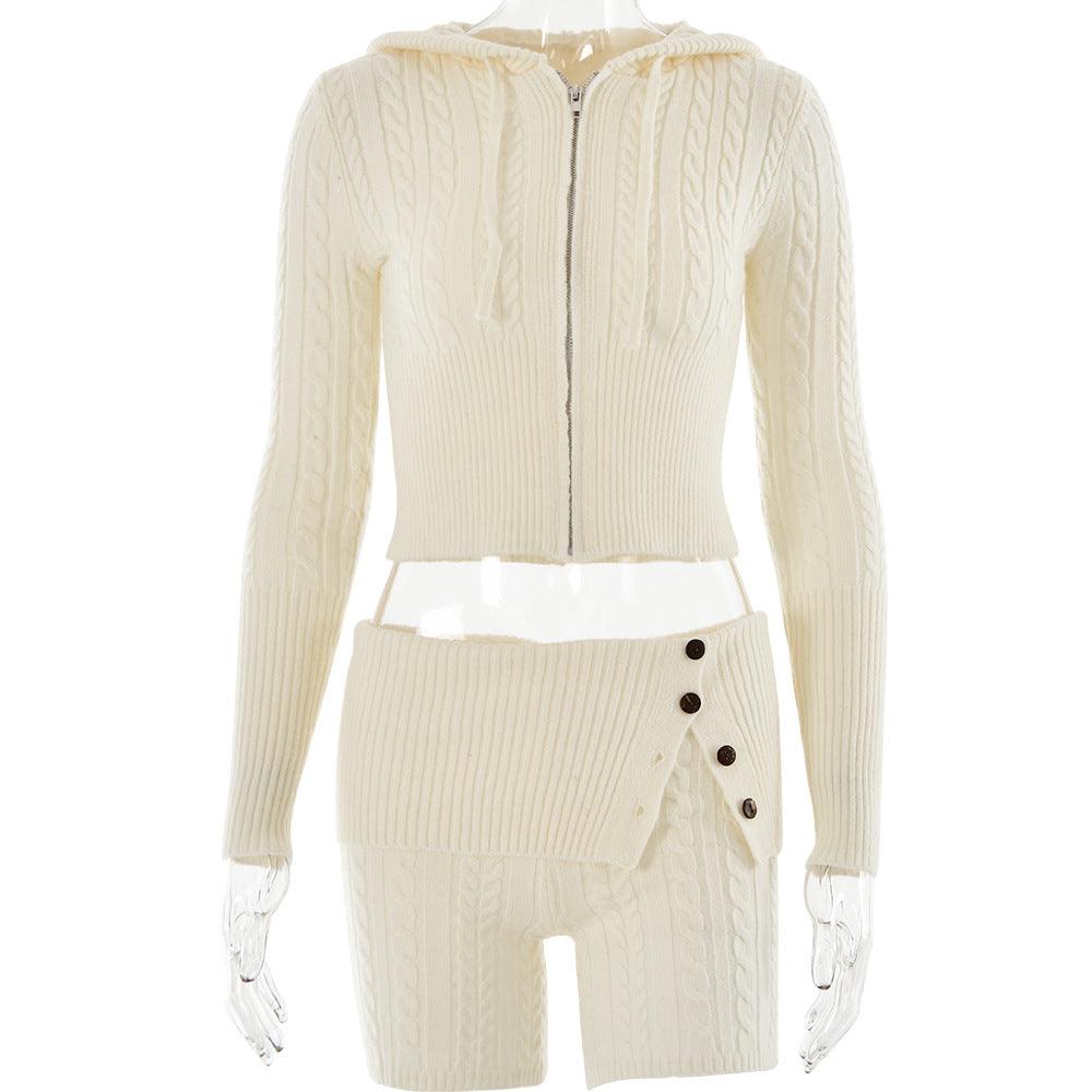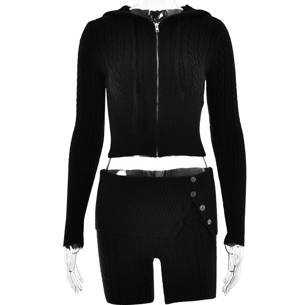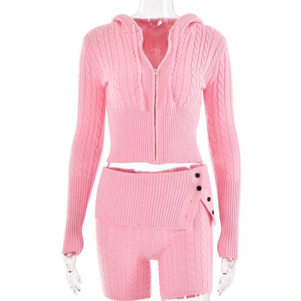 Color: black, pink, Milky White, knitted sweater suit, autumn and winter New, belt buckle no decoration, complete color, size available