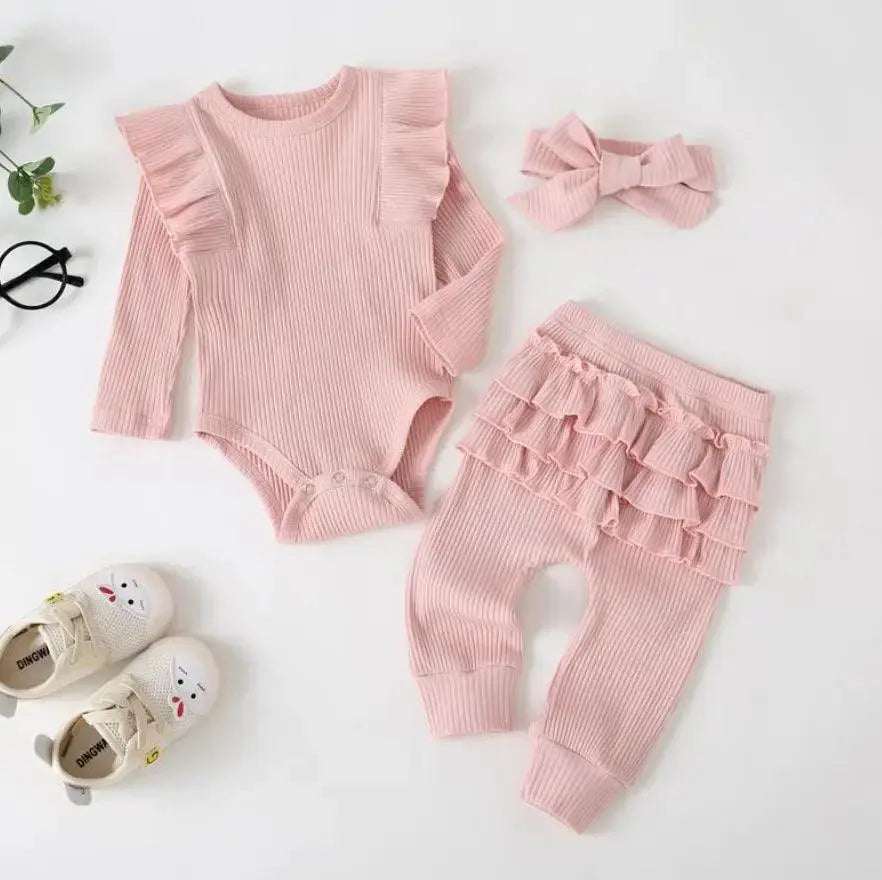 These beautiful ruffles will make your little girl look soft and sweet.Material: Cotton and SpandexIncludes: 3 Pieces - Headband, Bodysuit...