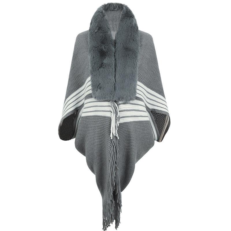 Tassel Cape And Shawl Women's Striped Fur Collar Scarf