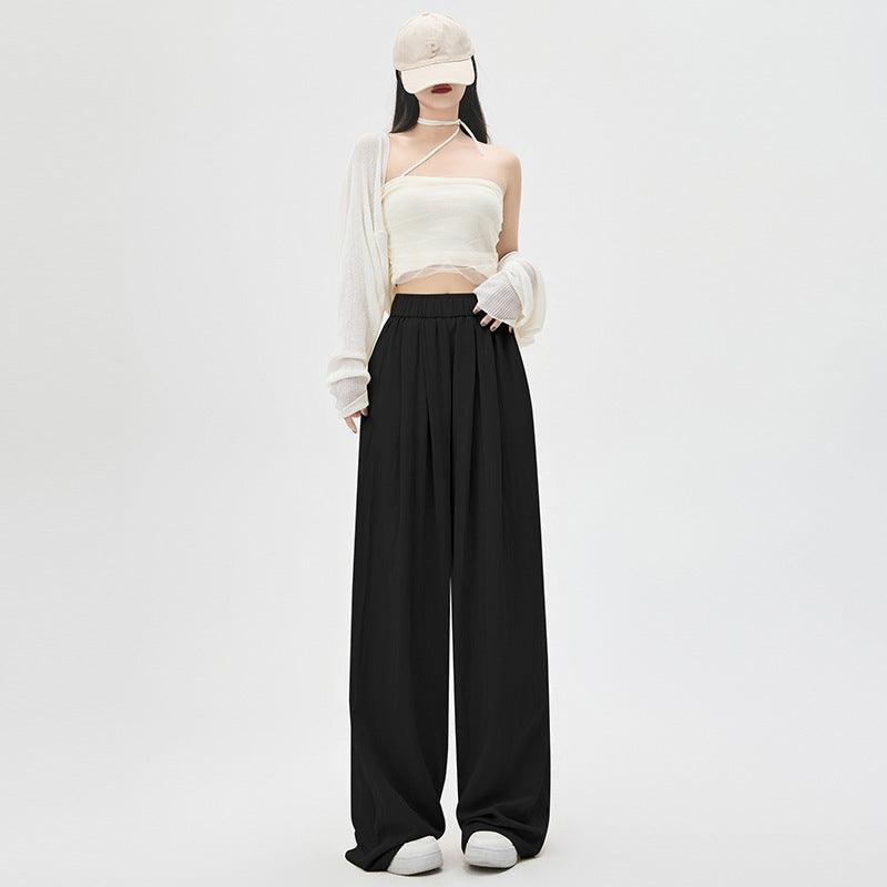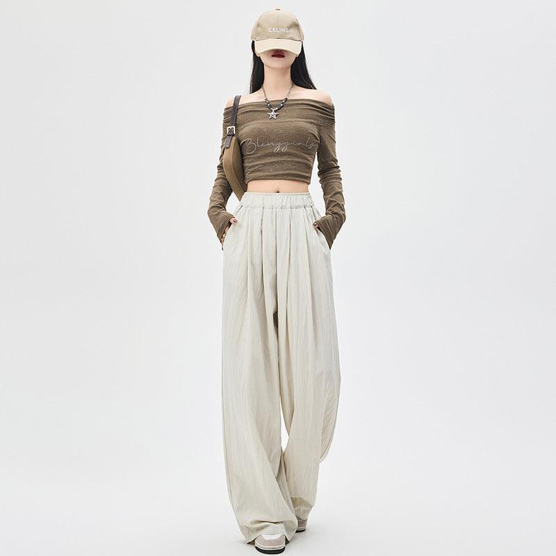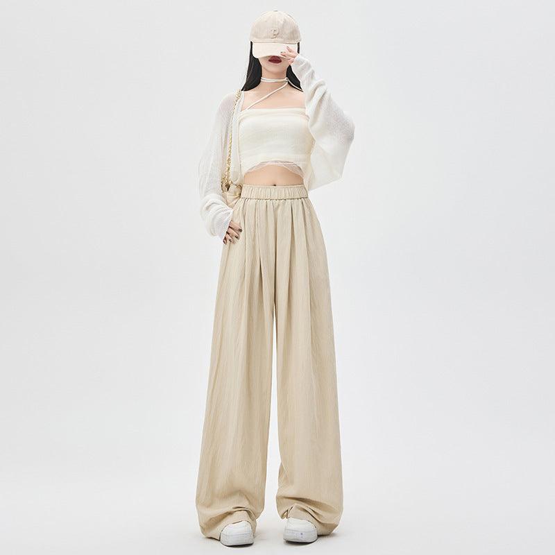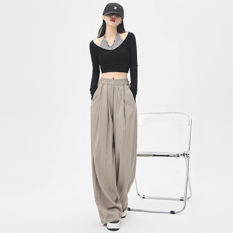 Texture Washed Cotton Wide-leg Pants Draping Effect Casual Straight-leg