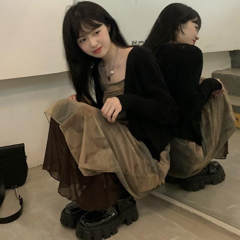 Style: GEMINI GOTHSleeve Style: Spaghetti StrapPattern Type: Hand-PaintedSilhouette: A-LineNeckline: StraplessDecoration: Tie DyeDresses Length: Ankle-LengthMaterial: MeshClosure Type: PulloverType: CamisoleWaistline: Natural FactorsSleeve...