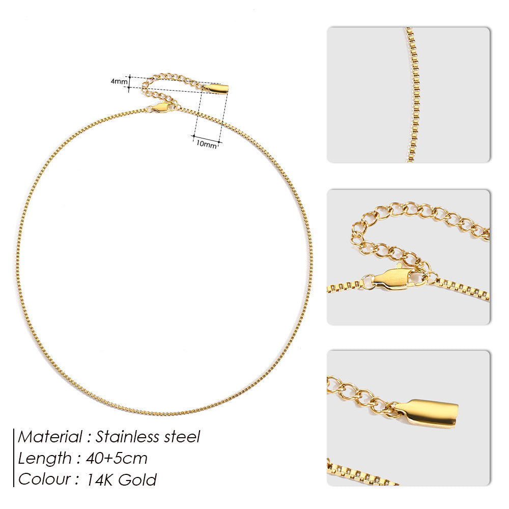 Product information:Treatment Process: ElectroplatingColor: gold, steelChain style: Box chainMaterial: Stainless steelPopular elements: chainStyle: ins stylePerimeter: 41cm (inclusive)-50cm (inclusive)Packing list: Necklace*1 Product Image: