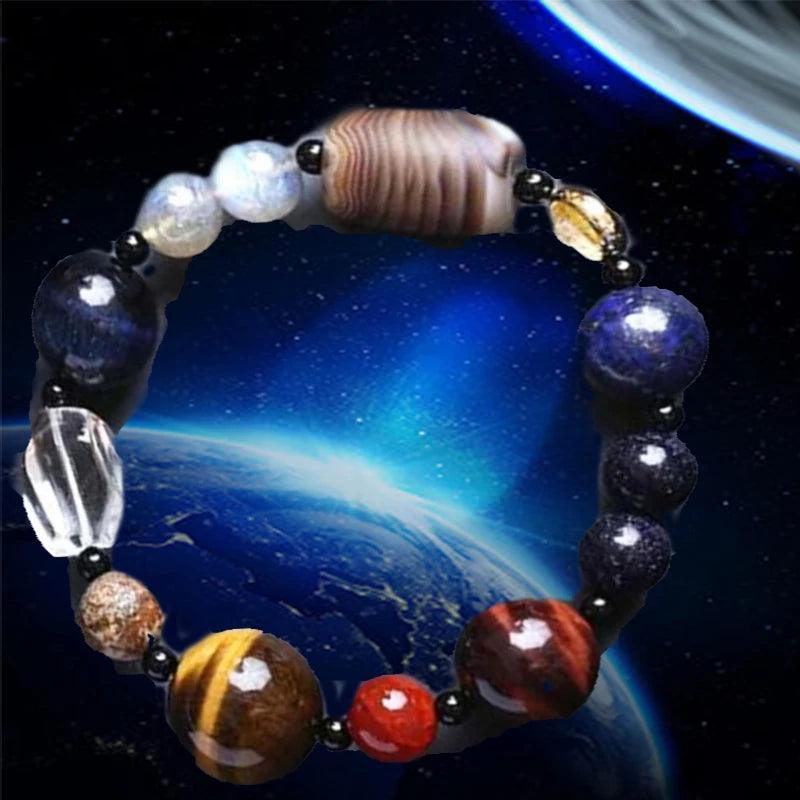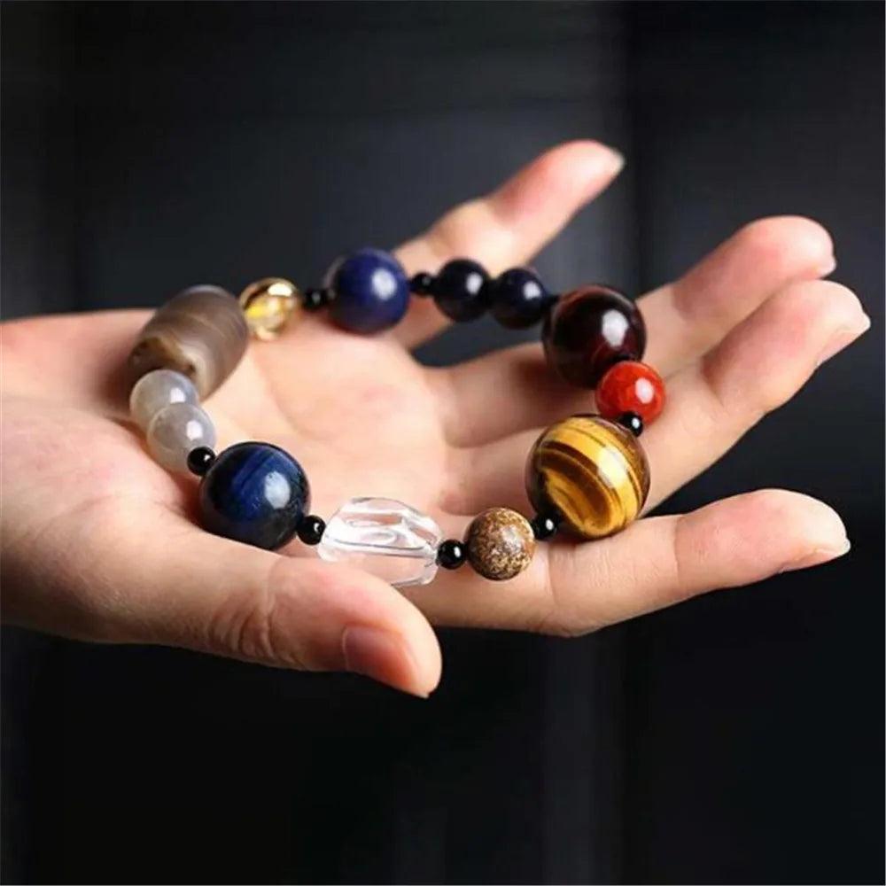 Universe Galaxy Star Bracelet 8 Planets Astronomical Solar System Tiger Eye Gem Stone Bracelet for Men or Women Healing Jewelry