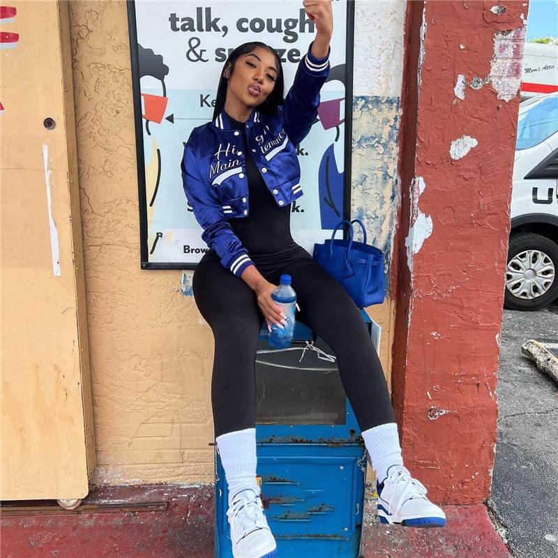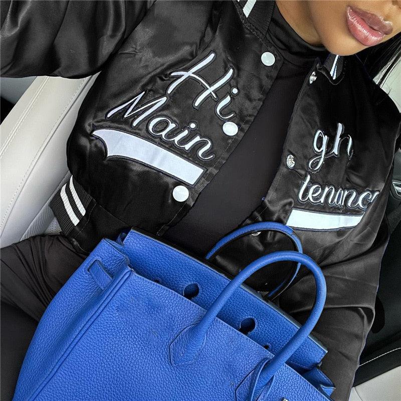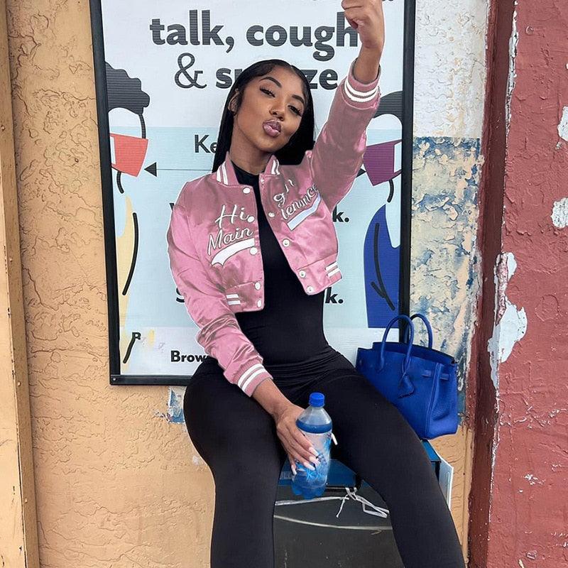 Varsity Baseball Letterman Jacket Cropped Racing Bomber Satin
