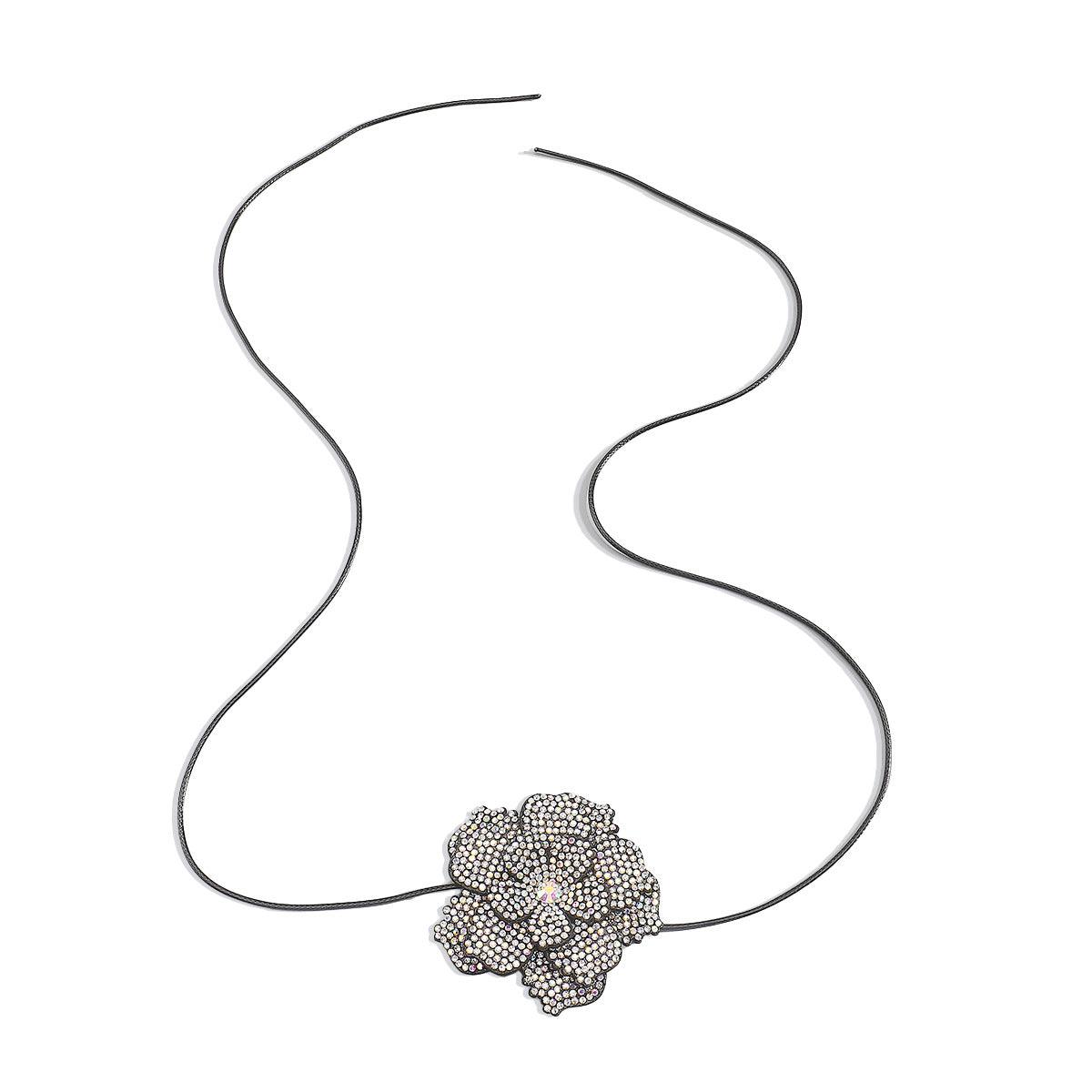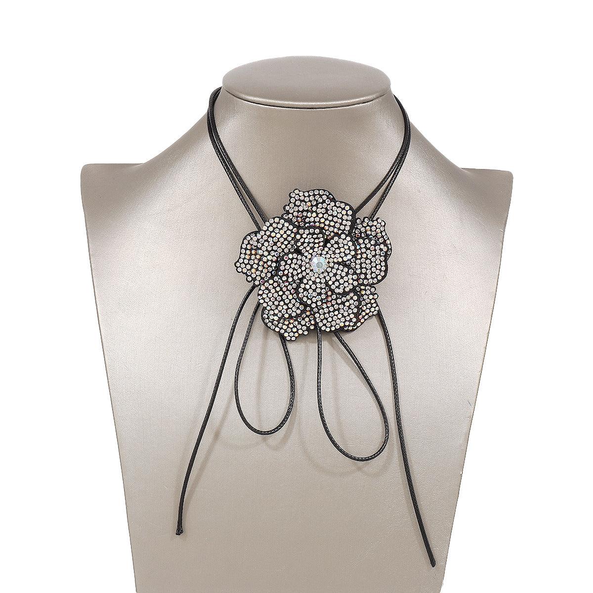 Vintage Full Diamond Chocker Camellia Necklace Wax Line Lace-up Bracelet