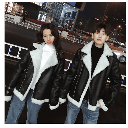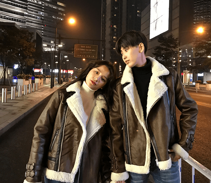Winter jacket plus velvet thickening couple suede lapel lamb