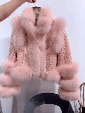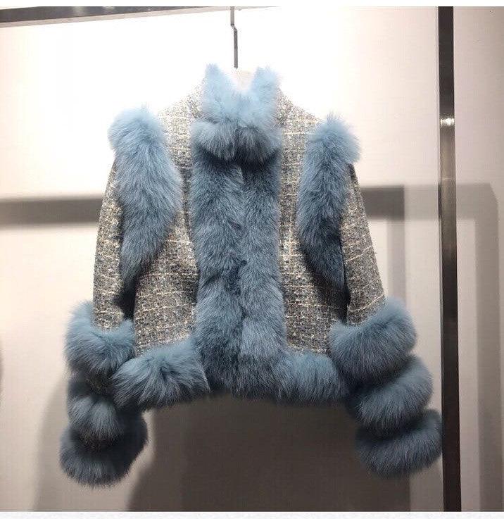Winter New Fox Fur Tweed Woollen Stitching Top Short Women's Coat