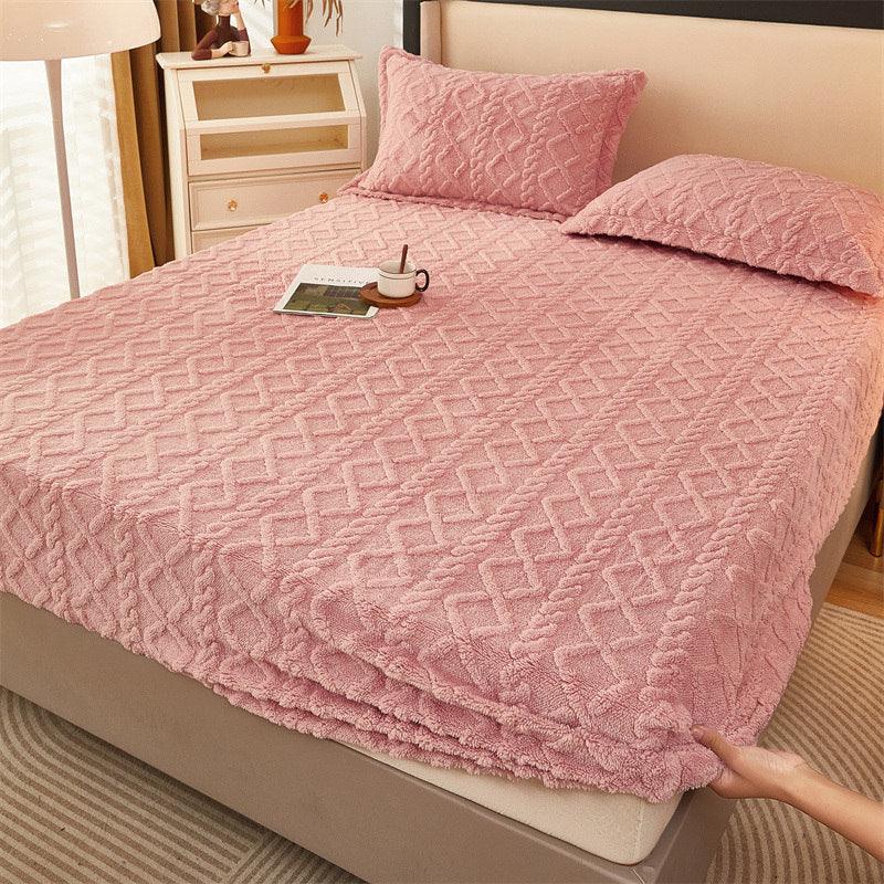 Winter Thermal Flannel Coral Fleece Fitted Sheet Fleece-lined Non-slip Bedspread