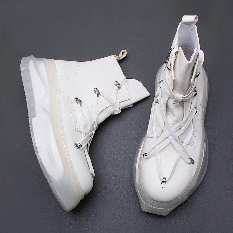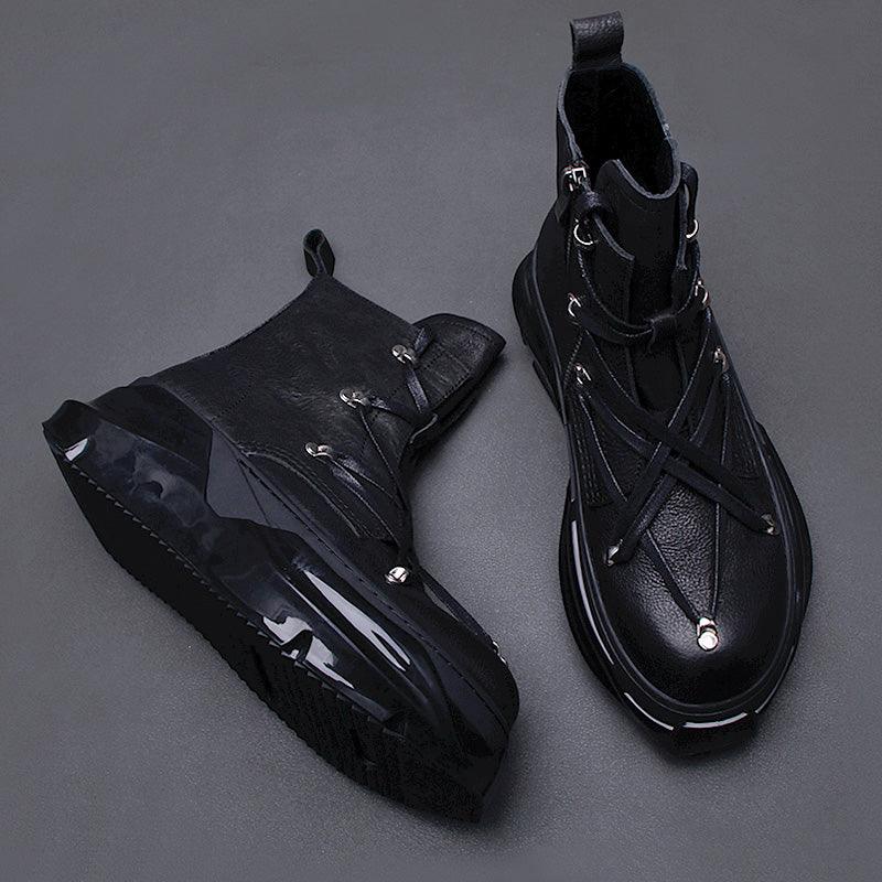 Winter Thick-soled Motorcycle Martin Boots Side Zipper Genuine Leather High-top Men's Shoes