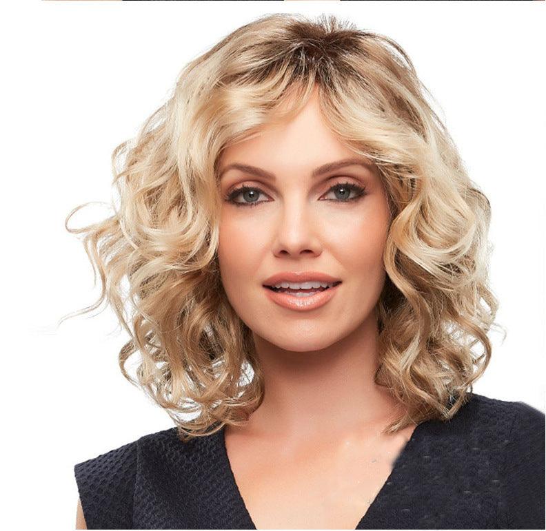Wish new European and American fake female long curlers in pearly hot short hair fashion gold color dyed wig hair
