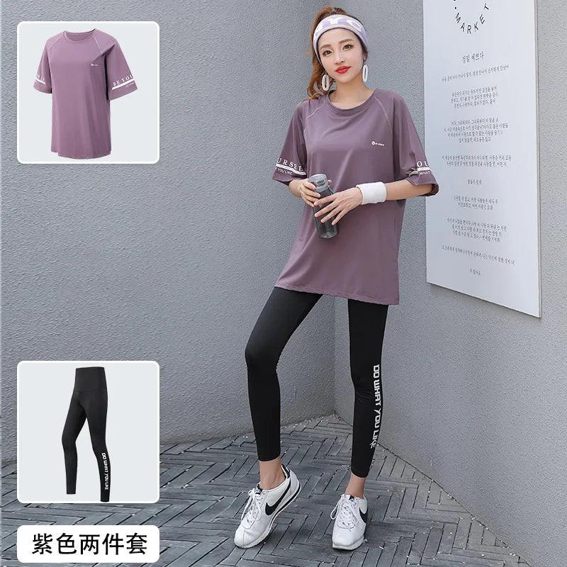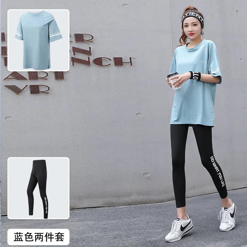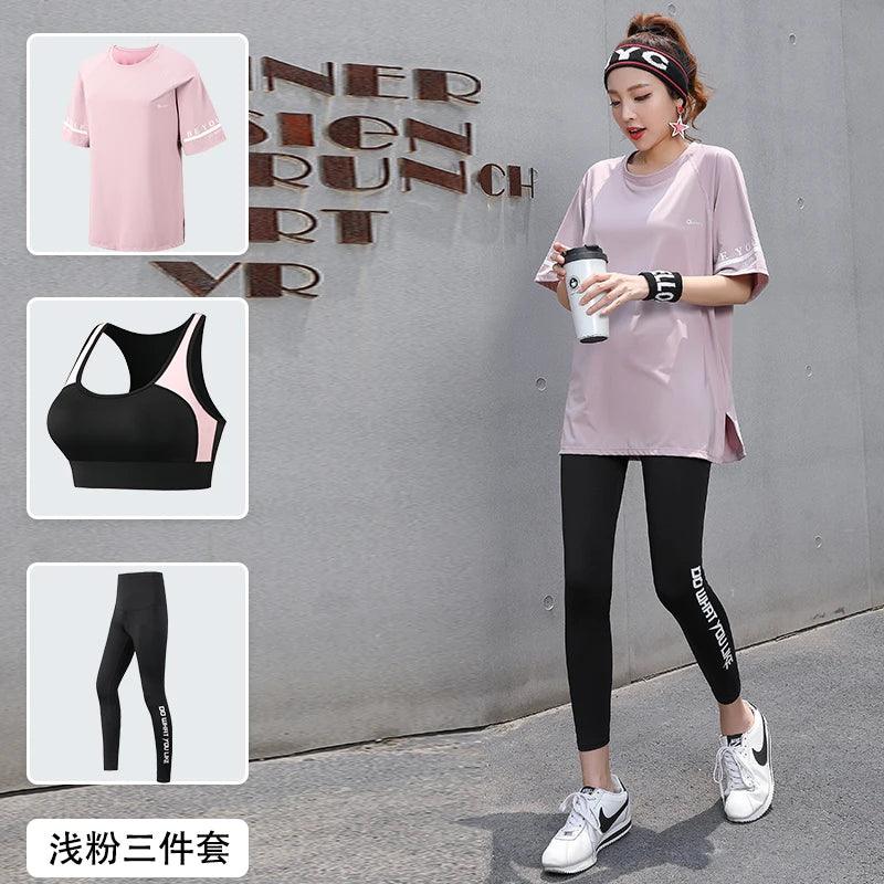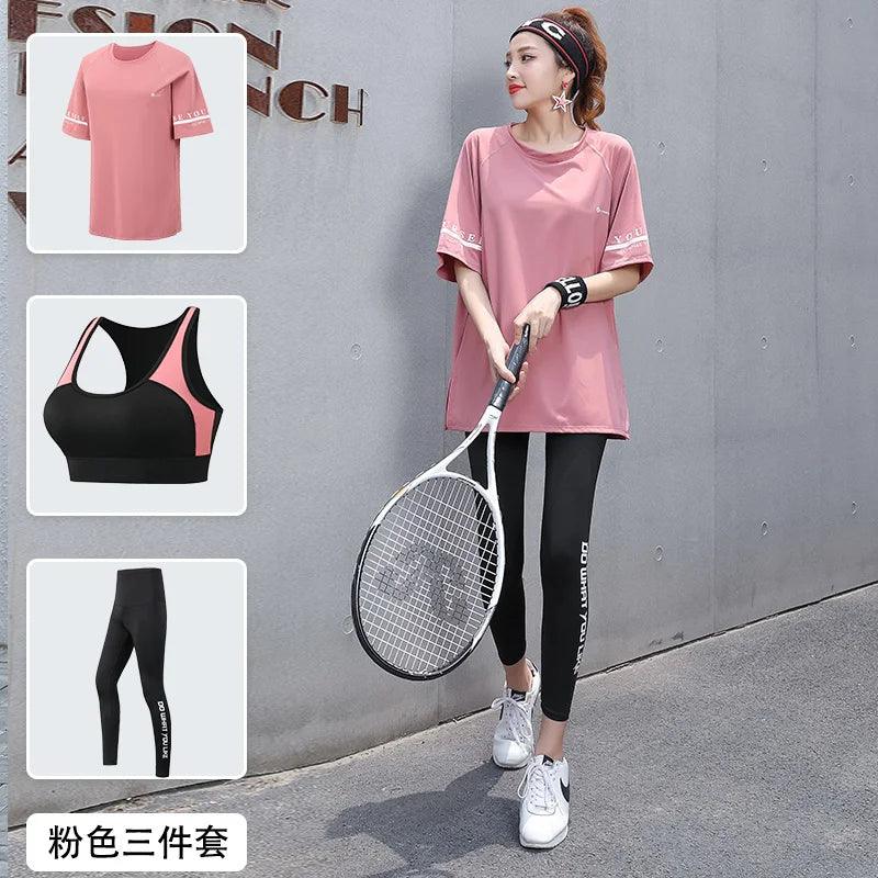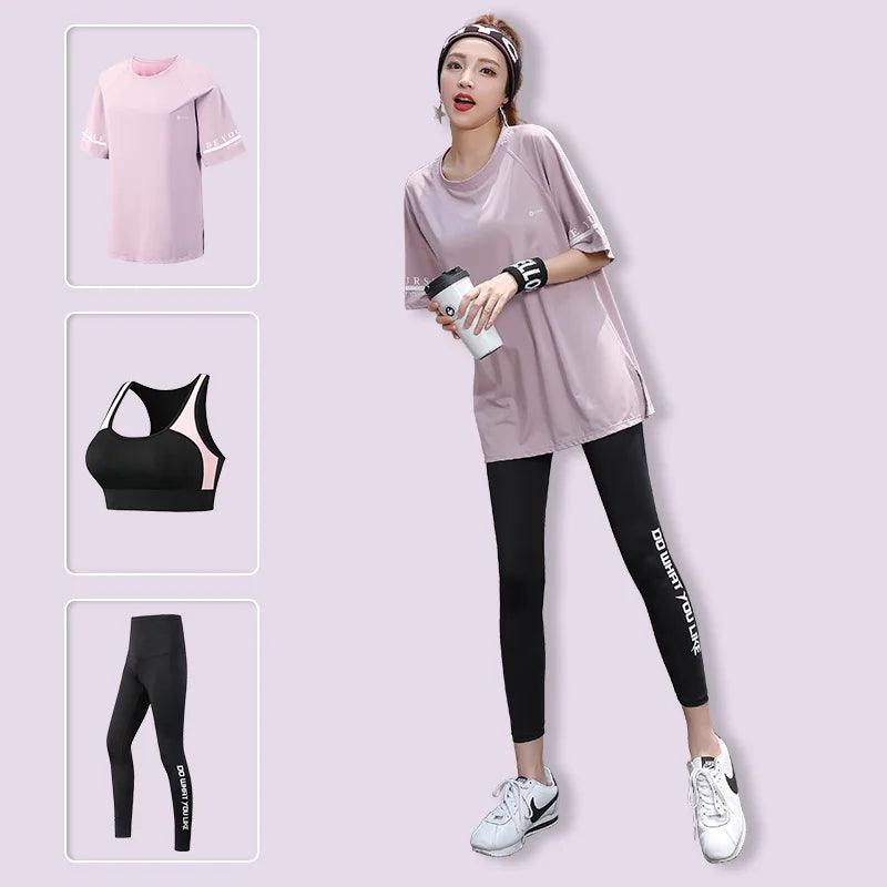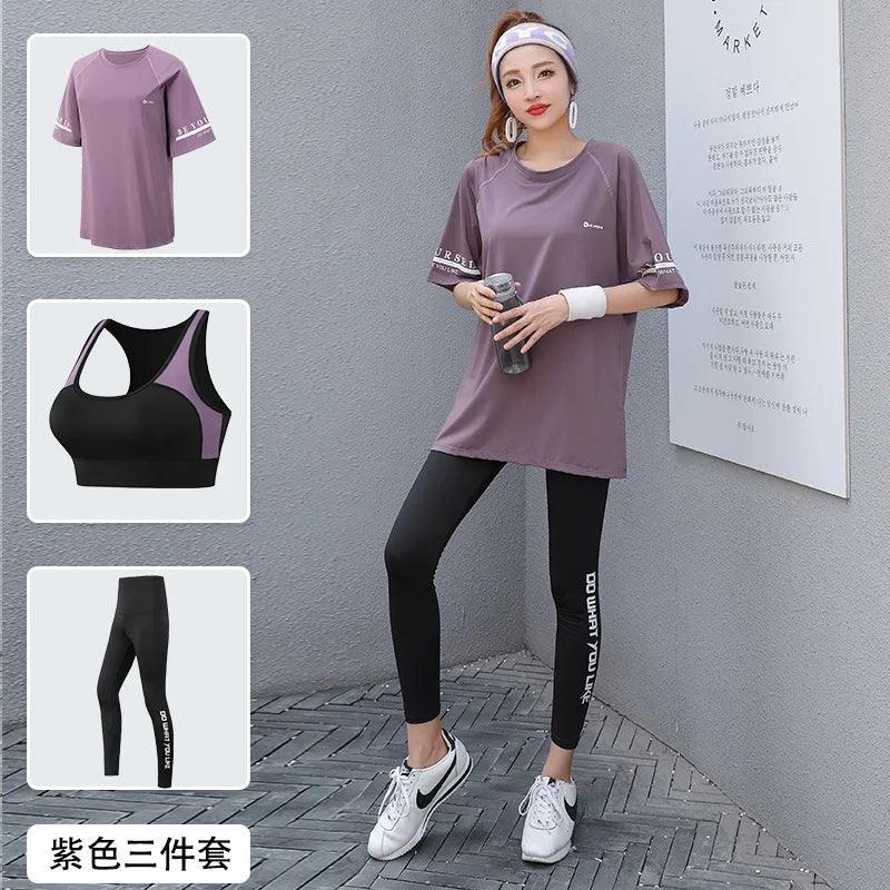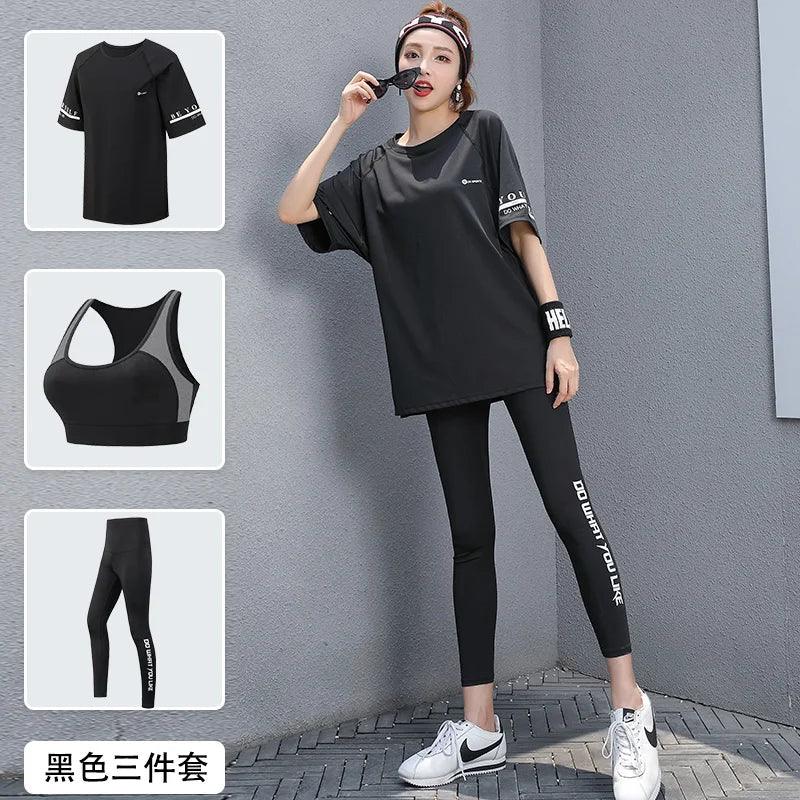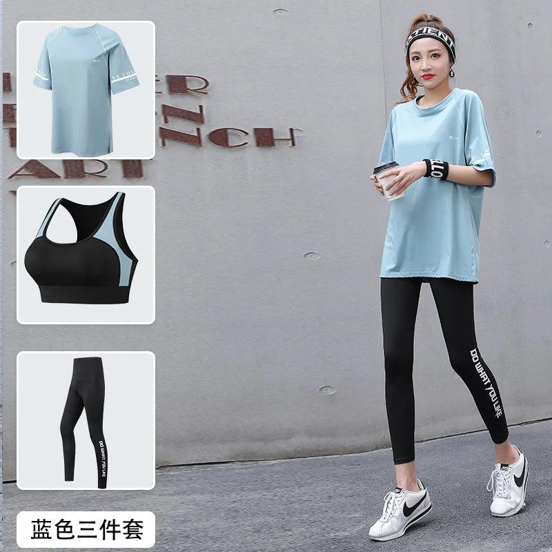 Women 3 Pieces Set Breathable Quick Dry Fitness Gym Loose T Shirt+Bra+Leggings Sports Running Yoga Suits Plus Size