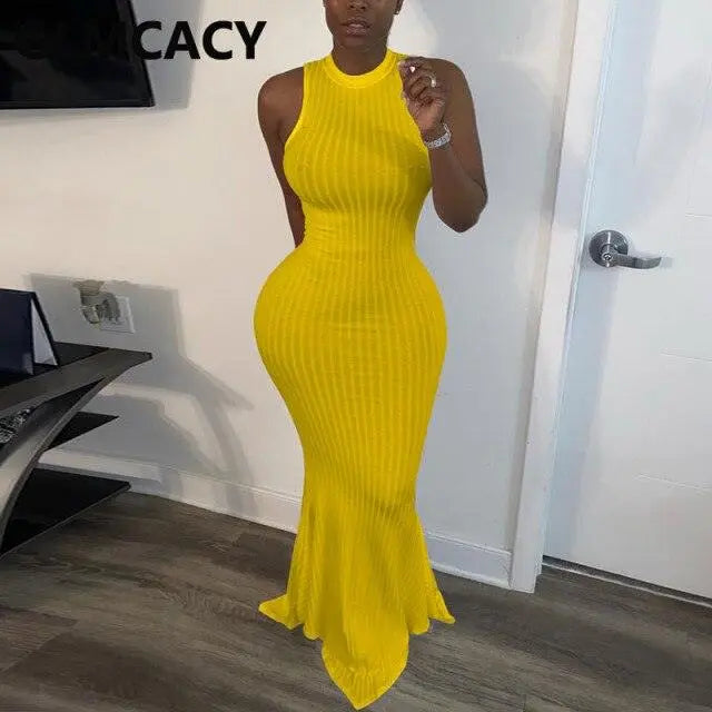 Women Casual Solid Bodycon Maxi Dress Sleeveless Evening Party Robes Elegant Formal Dress for Wedding