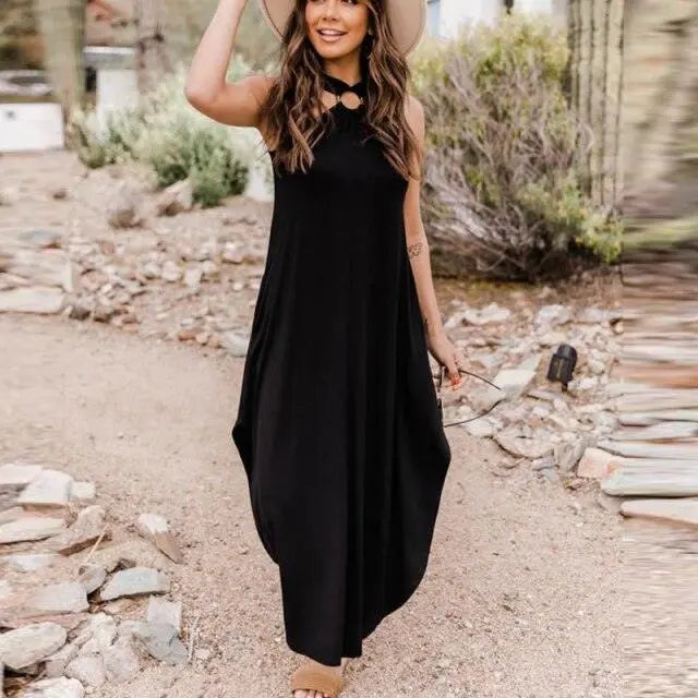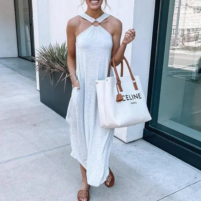 Women Loose Sexy Halter Dress Casual Sleeveless Solid Irregular Dress Summer Fashion Beach Chest Wrap Strapless Backless Dresses