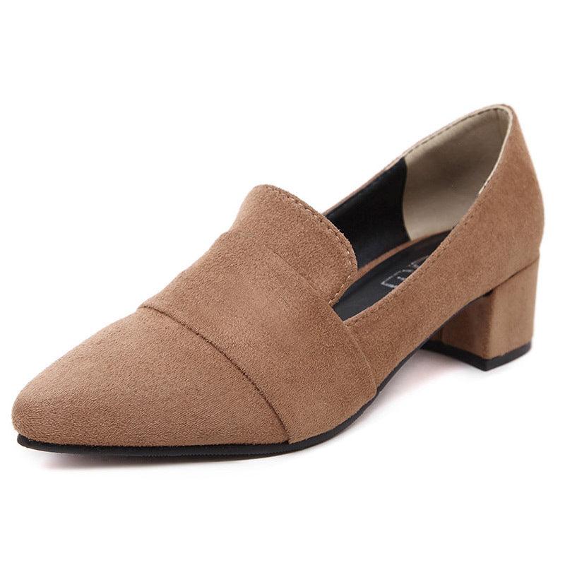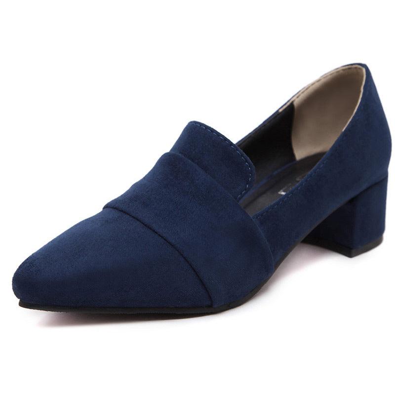 Women's All-matching Chunky Heel Deep Mouth Pointed Pumps