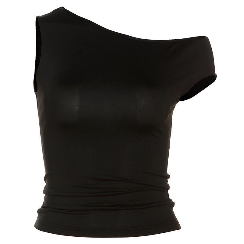 Women's Diagonal Collar Slim Fit Midriff-baring Solid Color Vest