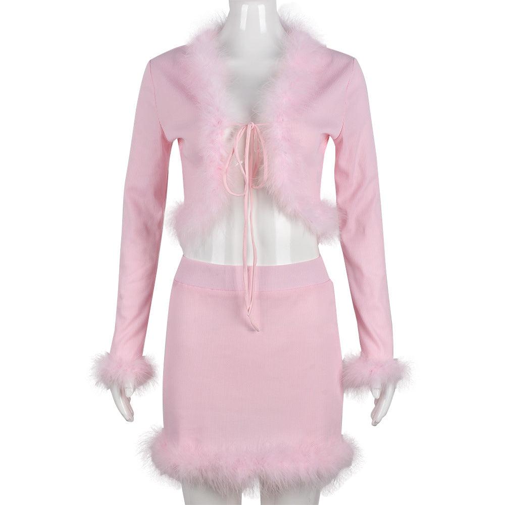 Women's Hollow-out Cropped Short Skirt Two-piece Set