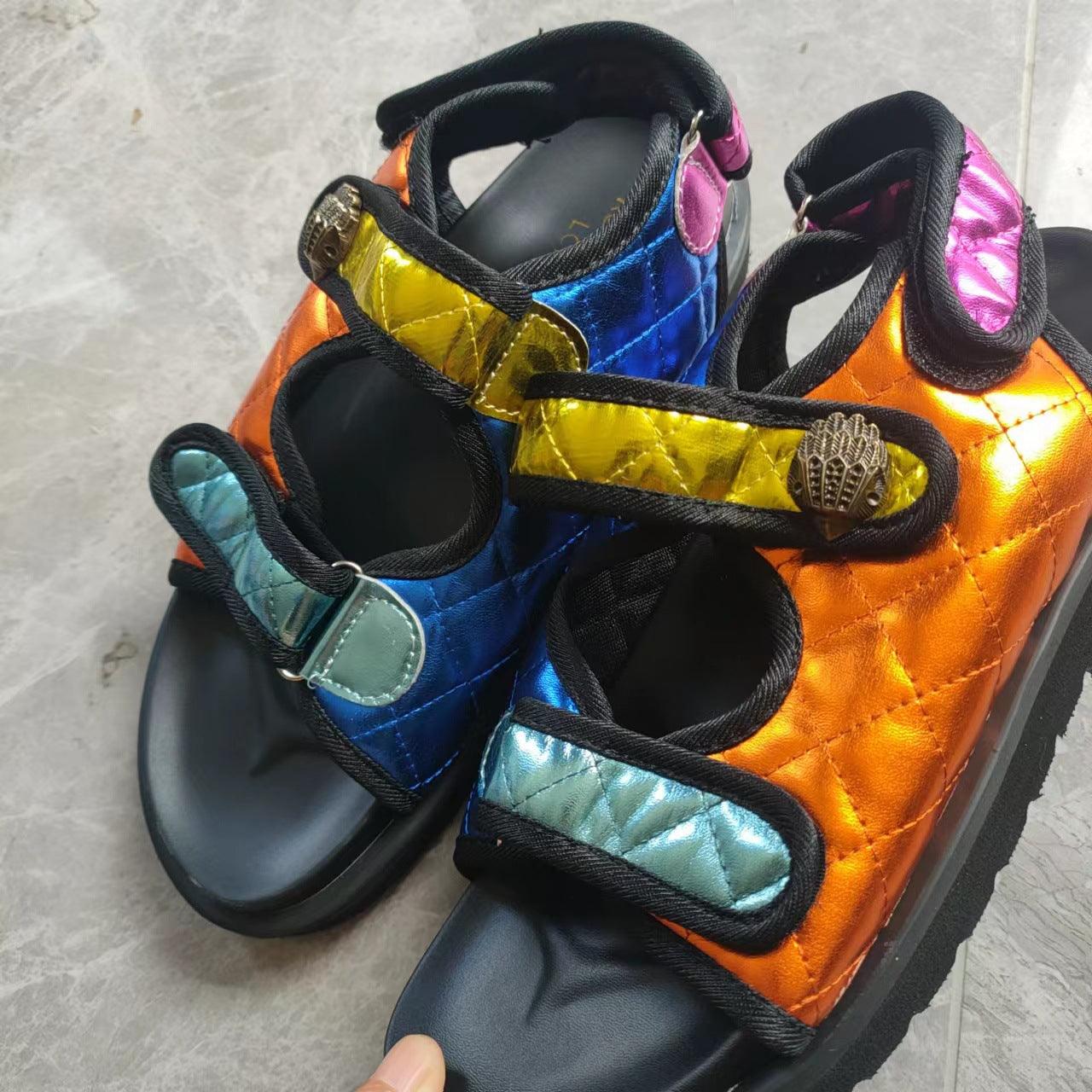 Women's Sandals European And American Plus Size Classic Style Plaid Velcro Thick Low Beach
