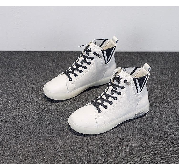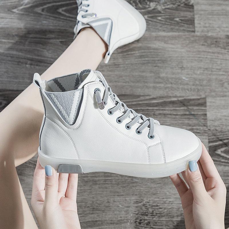 Women's Short Boots Fleece-lined White Shoes Soft Bottom Casual Flat