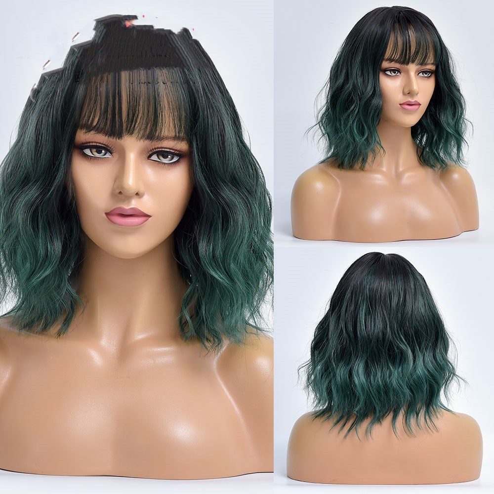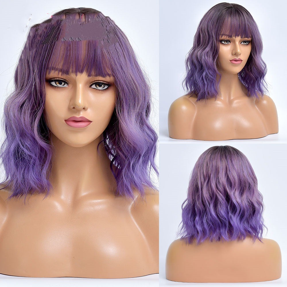 Product information:Color: fog smoky purple gradient TB2020056-1, coral orange gradient TB2020056-2, peacock green gradient TB2020056-3Wig style: bangs short curly hairApplicable... Read more