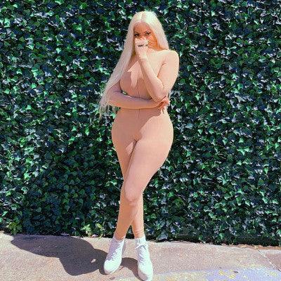 Women's Zipper Stretch Turtleneck Jumpsuit with Embroidered Design