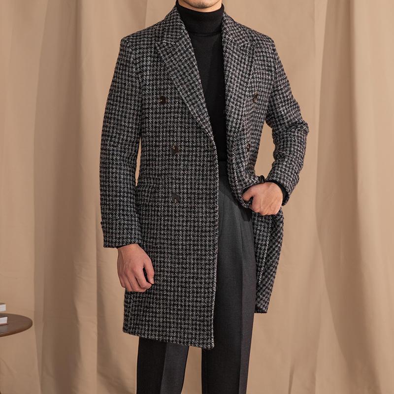 Wool Double Breasted Houndstooth Coat Mid-length Coat